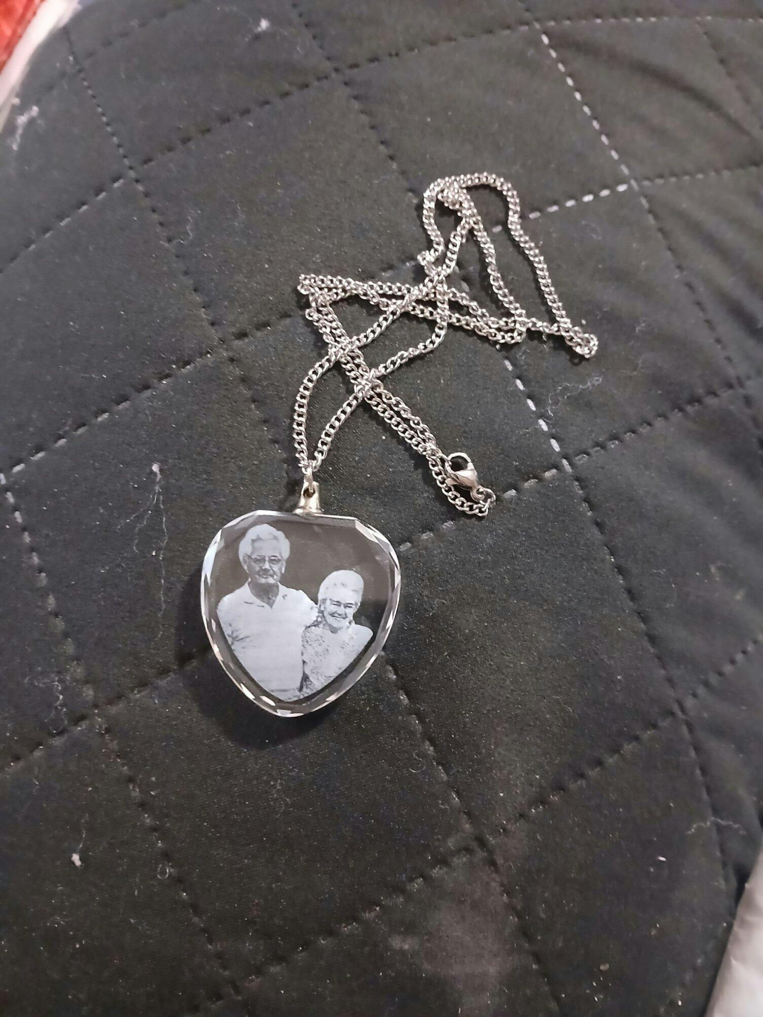 This necklace is fully personalized with your own photograph. Your uploaded image is professionally converted into a 3D model and meticulously laser-engraved inside the crystal pendant.