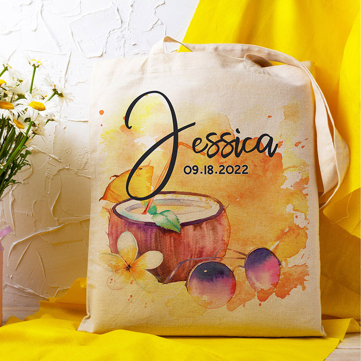 If you are one of those who never get enough of summer and never let the summer vibes go low, we have something very special for you. A beach bag that you will never leave without. All the summer colors and vibes are met on this Personalized Beach Bag, and we also put your name on also, and your summer motto will be put on it. It is personal, it is unique, and it is stylish just like you. Our summer tote bags are also a great summer gift idea for someone special, like your girlfriend, wife, sister, or mom, and a matchy bff outfit. Since the summer concept has a lot of occasions in, these beach vibe totes make a great appearance as bridesmaid gifts for a beach theme bachelorette party.