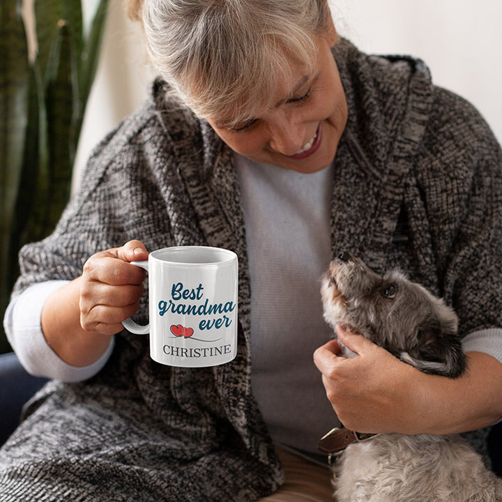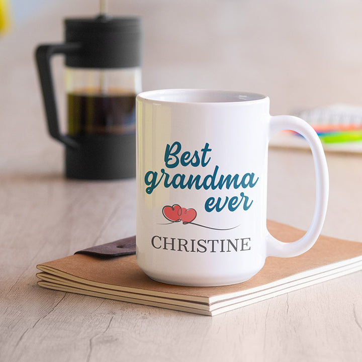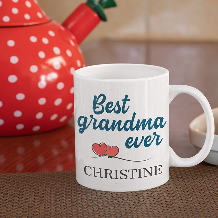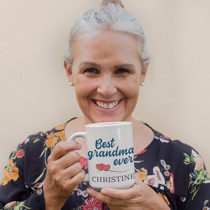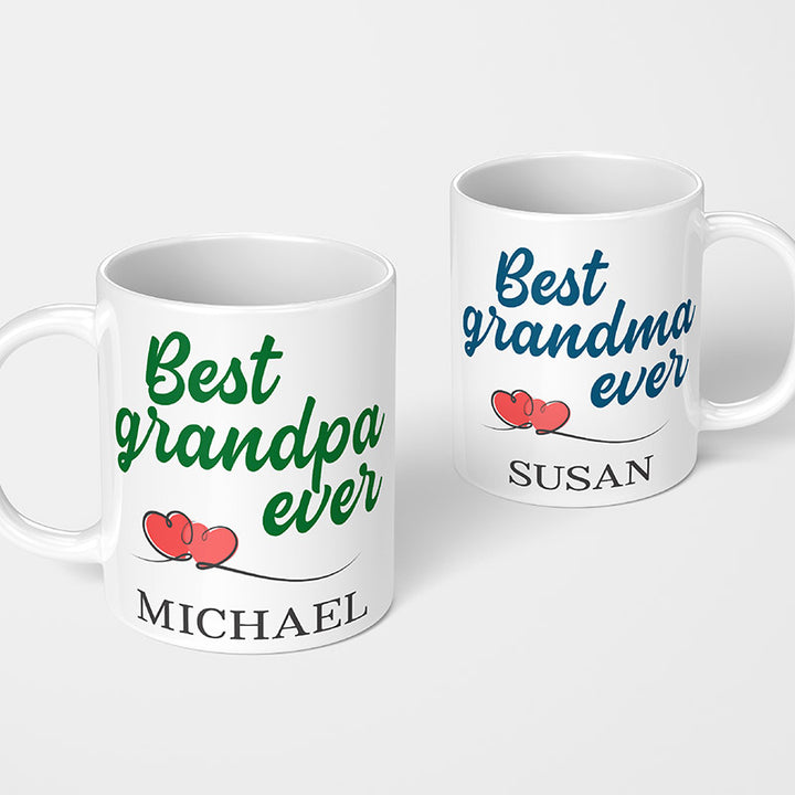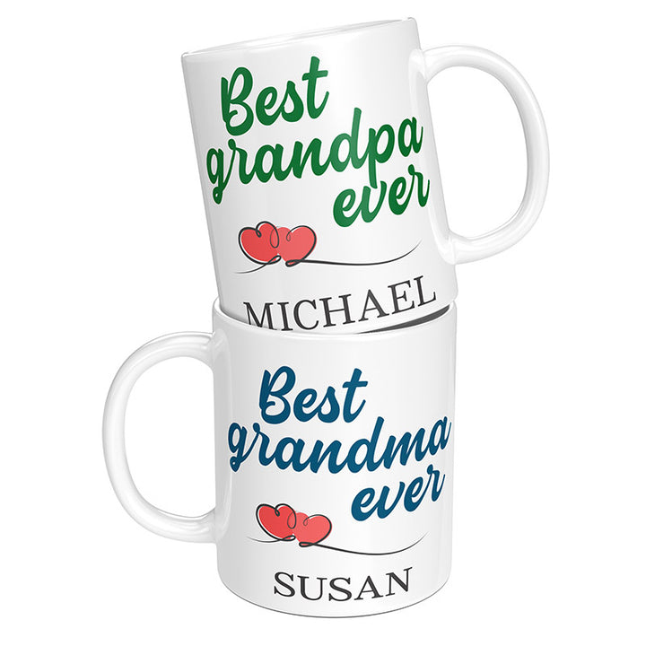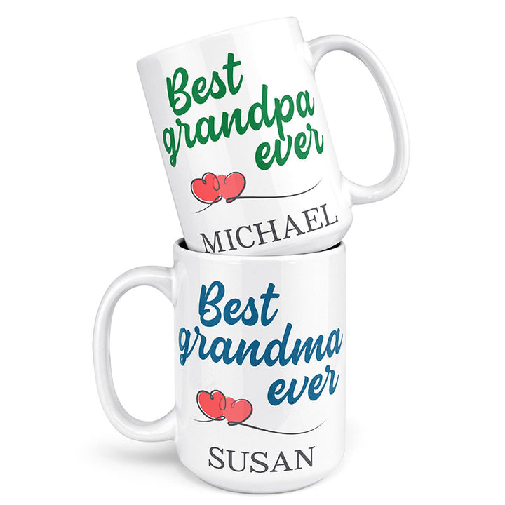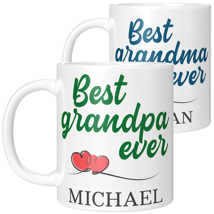 Best Grandma Ever & Best Grandpa Ever custom white mug with name.