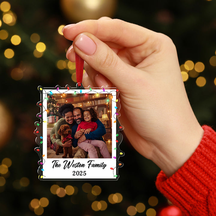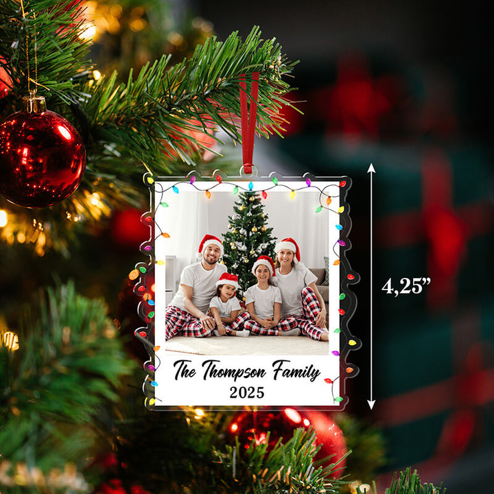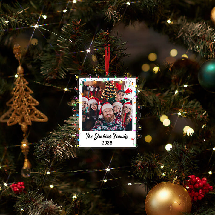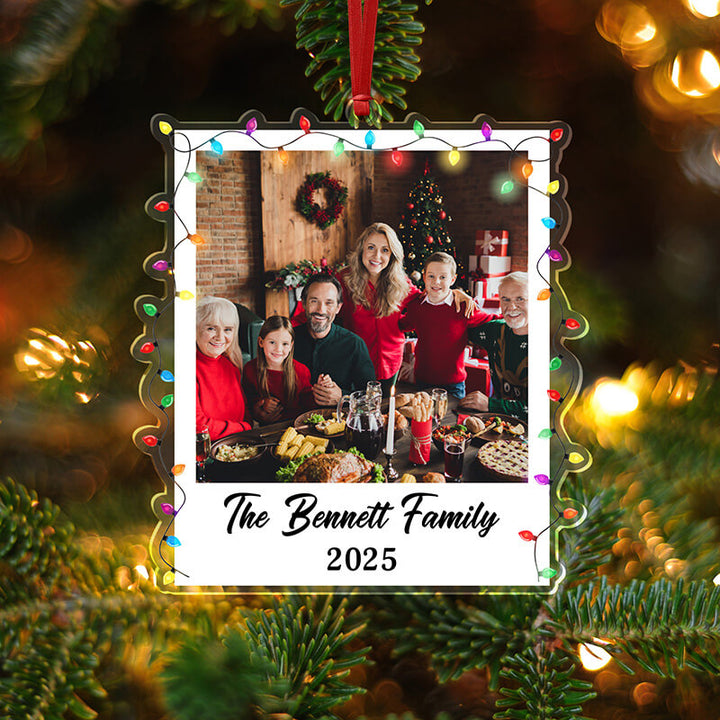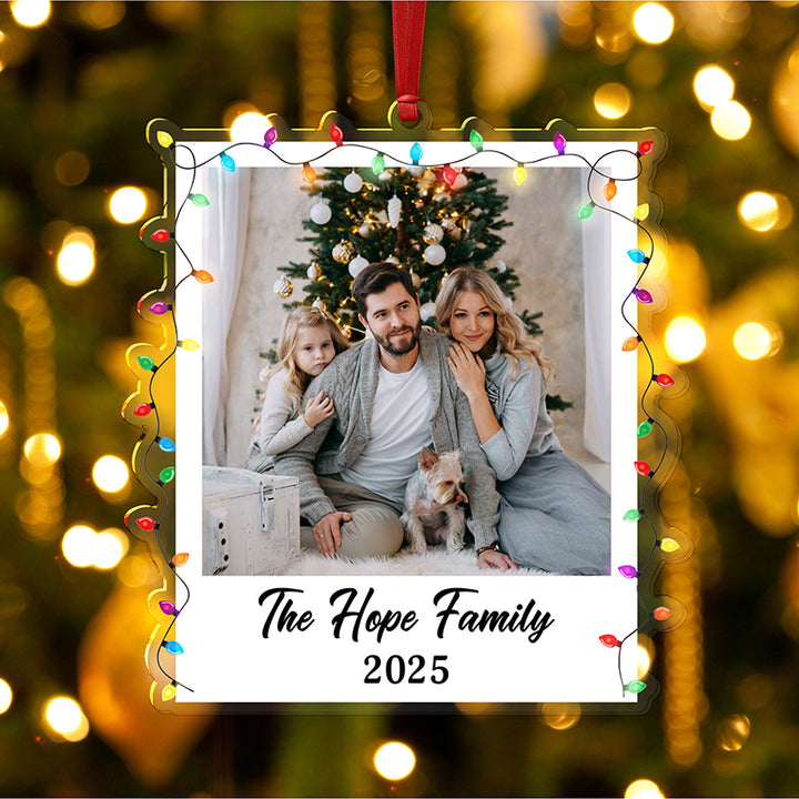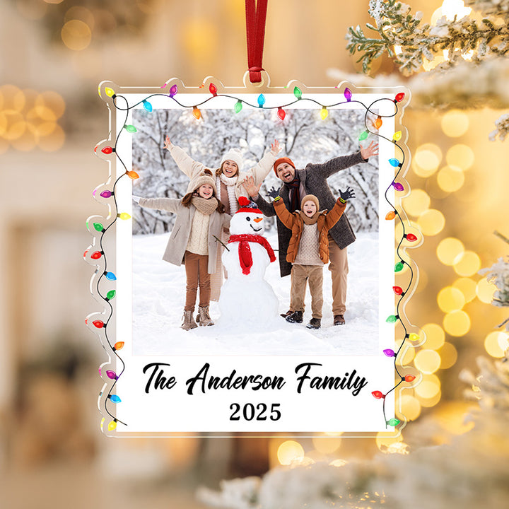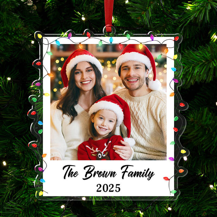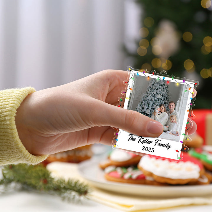 Introduction: Illuminate your festive centerpiece with precious recollections by utilizing the Polaroid Style Christmas Lights Picture Decoration, found solely at Giftshire. This gorgeously designed, four-and-a-quarter-inch acrylic keepsake converts your beloved photograph into an enduring piece of festive décor. Modeled after a traditional instant camera snapshot, it is bordered by a joyful chain of multicolored holiday illuminations, lending a bright, happy radiance to your setting. Just like the examples in our styled photographs featuring the "Hope Family" and the "Thompson Family," it allows you to craft a deeply customized memento for your household by inscribing your picture, specific title/name, and the current year, for example, "2025". If you are seeking a specialty item like a "custom picture ornament" or an exceptional "keepsake photo gift," this item is ideal for memorializing significant life events. Place this delightful photographic border decoration upon your holiday pine to honor your family’s valuable experiences and begin a yearly custom that everyone will cherish indefinitely.