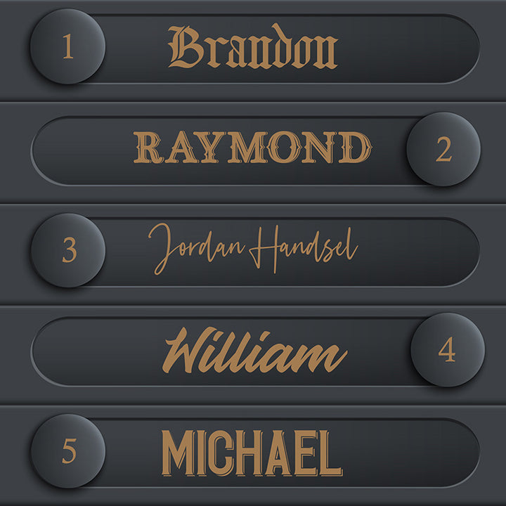 To reach the best aesthetic result, our custom page only allows names up to 12 characters. For longer names or multiplier words, you should get in contact with our customer service, but the font size may be reduced to maintain readability.