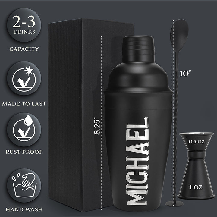 Buy a gift for your home bar or give a special cocktail maker gift to someone special. This shaker is a modern and matte black, made of stainless steel. It’s simply everything you need to elevate your cocktail-making experience. What makes this product special is the font style you choose for the name engraving. From a Gothic feel to bold and modern letter styles, you can make your cocktail maker shaker uniquely and completely yours by selecting the design that reflects your style in the best way. This shaker set is one of the most thoughtful gift you can purchase for cocktail enthusiasts to buy on birthdays, anniversaries, Father’s Day, or any special celebration.