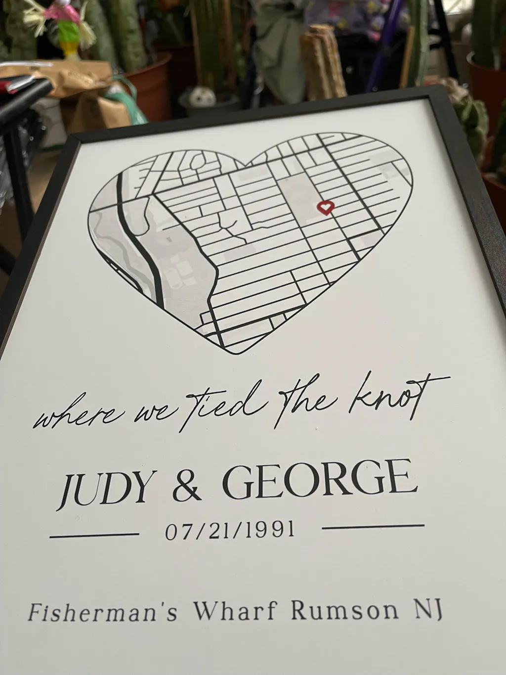 You can add any city, town, or special location, and we’ll create a map from your custom details, with the accurate Google map view. The custom map will be rendered within a heart-shaped outline, which symbolizes your bond. A red heart marker will be pinned on the map, showing the precise location: a restaurant, park, home, or any memorable place.