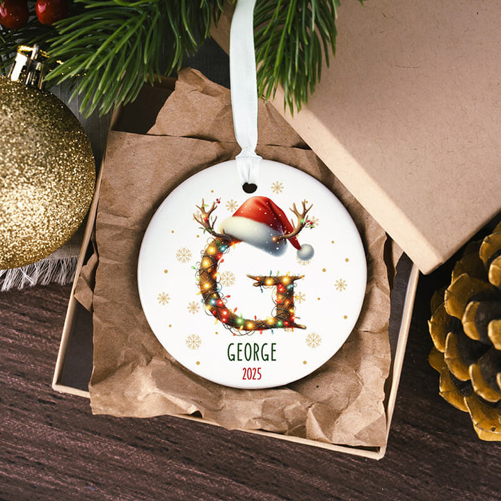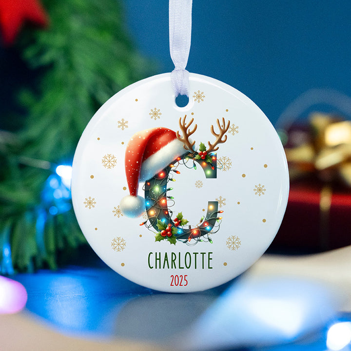Impart a special and individualized sparkle to your holiday evergreen this festive period with a personalized starting-letter trinket, obtainable only from Giftshire. This 3.5-inch decoration is intended to enchant, functioning perfectly as either a valued household heirloom or a thoughtful present. Each individual item displays the first letter you select, exquisitely decorated, charmingly adorned with twinkling holiday illuminations, reindeer antlers, and a typical Father Christmas cap. Ensure it truly reflects your style by customizing it with a specified forename and the relevant calendar year, thus manufacturing a peerless, unique keepsake. Fashioned using superior, durable materials, shoppers have the ability to opt from three robust choices: Earthenware (Ceramic), light Metal (Aluminum), or clear White Acrylic.