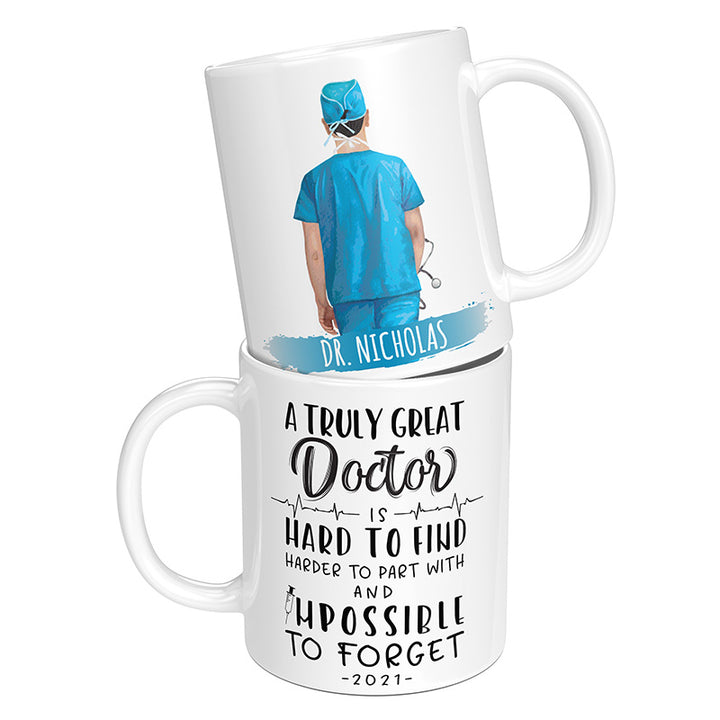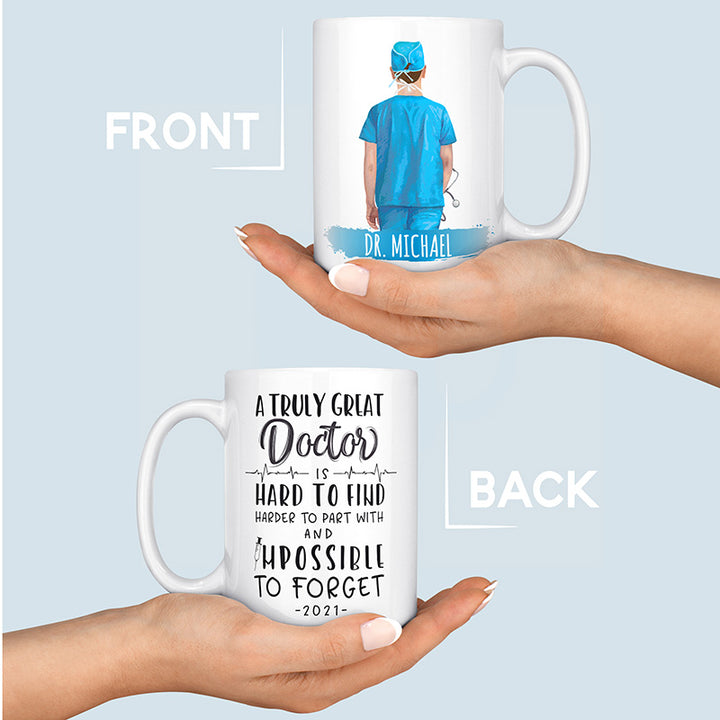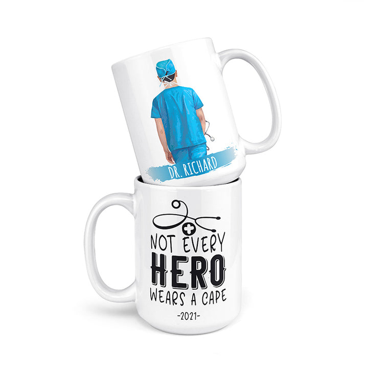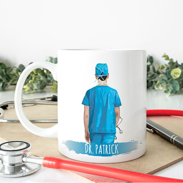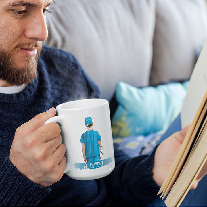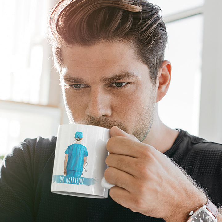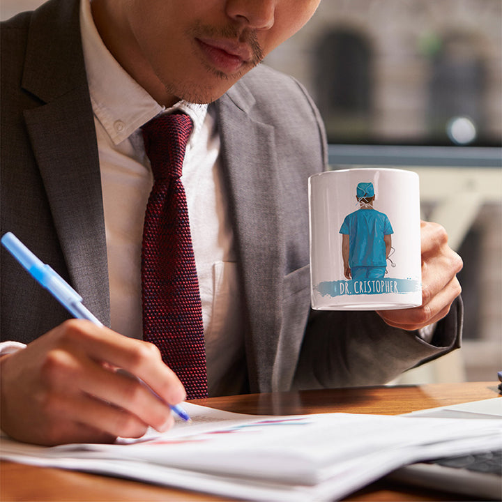 Our Personalized Mug for Doctor's Daily Dose of Coffee is designed to cheer them up with style and from the heart. This personalized coffee mug can be customizable from both sides. On a side, your custom doctor figure will be displayed and you'll be able to customize it with skin tone and hair light with name and a special date. On the other side, you'll choose an inspirational quote.