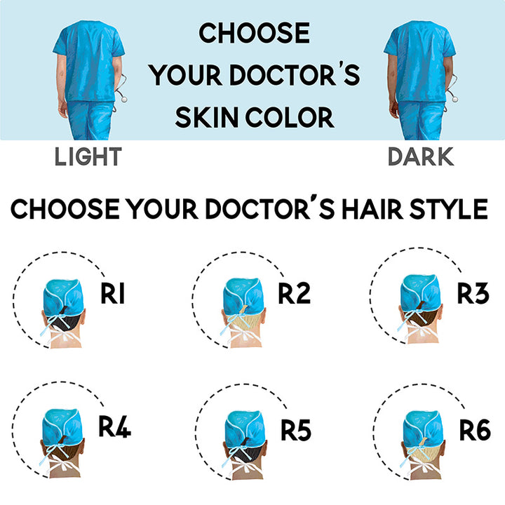 First choose your daily dose of coffee mug size from 11 Oz and 15 Oz. Then click the personalize button. See how your doctor looks like, customizing the skin tone, hair light, meaningful quote, name and date.