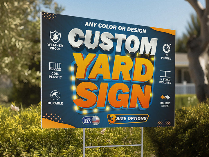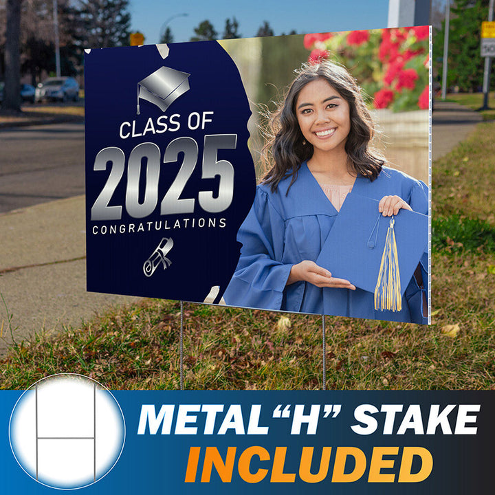 Introduction: Grab attention for virtually any event with a bright, entirely personalized lawn marker, engineered to showcase your communication clearly right where people can see itE. Whether you are honoring a high school or college graduate (like a “Class of 2025” student) using a unique photograph, listing real estate, publicizing a special shopping deal (such as a Black Friday sale), or simply informing the neighborhood about a household clearance, these markers grant you total design liberty. You have the choice to either submit your own artwork that is ready for printing or effortlessly construct something novel starting with a blank template. Tailoring the sign is straightforward: input your specific written message and graphics, and then choose from a broad collection of 35 shades for the backdrop and wording, plus 20 different typefaces to precisely align with your concept. Every sign is constructed from long-lasting, weather-resistant corrugated plastic and utilizes superior, UV-cured printing to guarantee the images do not diminish in brightness . Offered in a selection of three dimensions (12 by 16, 18 by 24, and 24 by 36 inches) and featuring an available dual-sided printing option for maximum viewing angles, each purchase includes a robust, metal “H” support post for rapid and reliable placement.