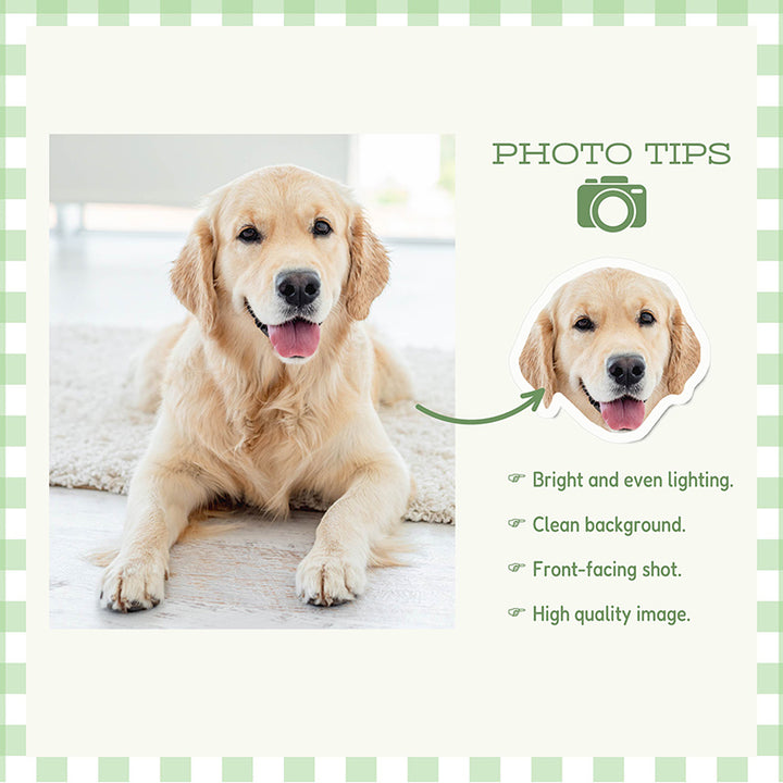 The acrylic upper portion is precisely shaped and printed using the facial image derived from a picture you supply.