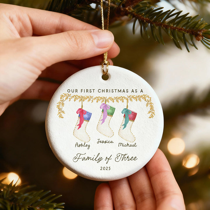 Handcrafted from durable ceramic bisque and finished with soft watercolor-style artwork, this ornament becomes an emotional keepsake the moment you personalize it. Whether welcoming a new baby, honoring a newly married couple joining the family tree, or simply celebrating the unique mix of personalities in your home, it brings a heartfelt touch to your Christmas décor. Display it proudly on your tree, gift it to a loved one, or keep it as a snapshot of this precious chapter in your family story—because every stocking tells a story, and yours is just beginning.
