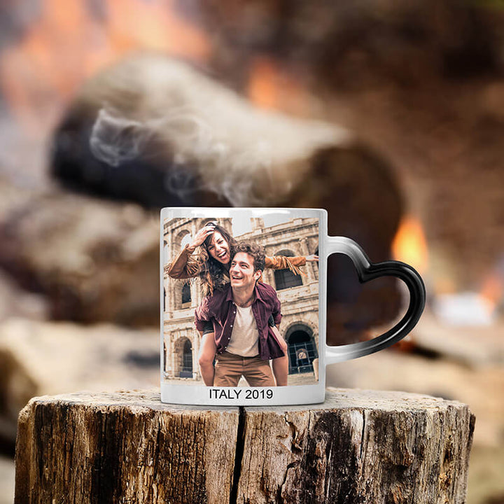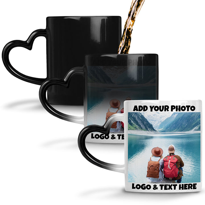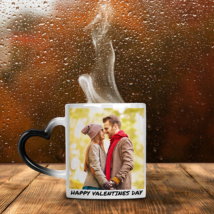 Custom Heat Reveal Photo Magic Mug with Heart Handle
