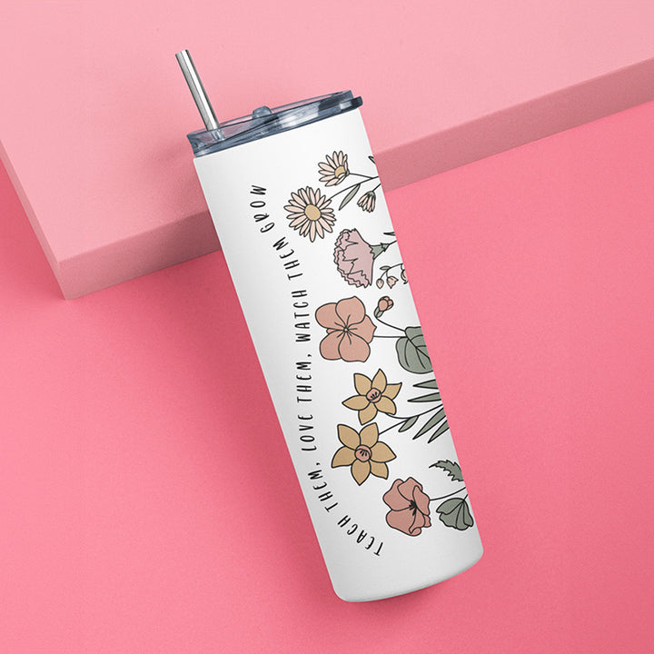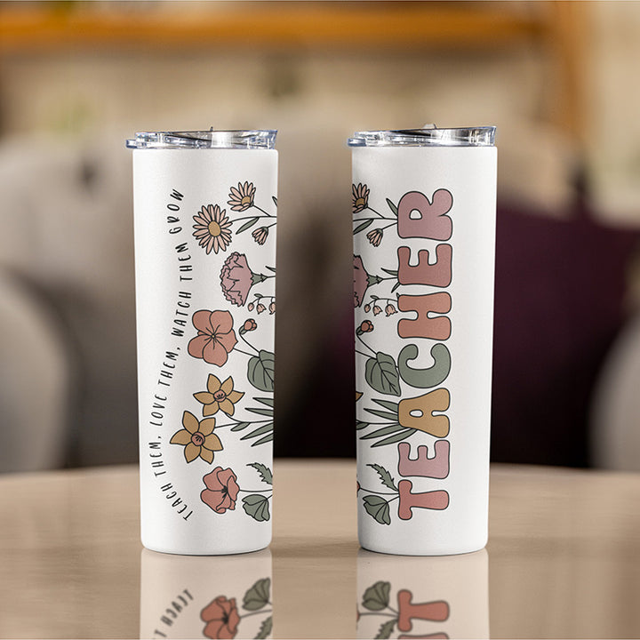 We believe that our Teacher Tumblers will melt your favorite teacher’s heart. “Teach Them. Love Them. Watch Them Grow.” This saying is the message that we wish to remind our lovely teacher of why they started this journey. This item is suitable for a teacher appreciation gift, a birthday gift for a teacher you know, a back-to-school gift, or simply a gift for the teacher of your life. It is also a gift that will ease a teacher’s everyday life with its 20 Oz capacity, hot/cold features, durability, and straw set. You can find more on our Back-To-School Gift Collection.