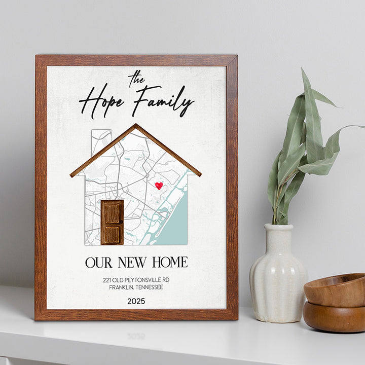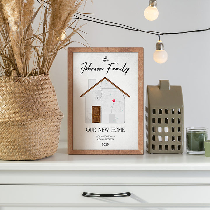 Where your story continues, Giftshire will be there for you. Every home has a story, and our Personalized New Home Wall Sign was created for those who believe a house becomes a home when love moves in and with the new beginnings. It could be a charm for your very first home, a new chapter in a new city, or a thoughtful gift for loved ones beginning their new journey under a brand new roof. This design gives the soul of that fresh start. Each piece features your family name, address, year, and a custom map marked with a heart pin. More than an emotional touch that turns the location into a meeting point of love. It can be displayed in an entryway, on a bookshelf, or as part of a cozy wall gallery. It fills the room with warmth, belonging, and a quiet elegance that feels deeply personal.