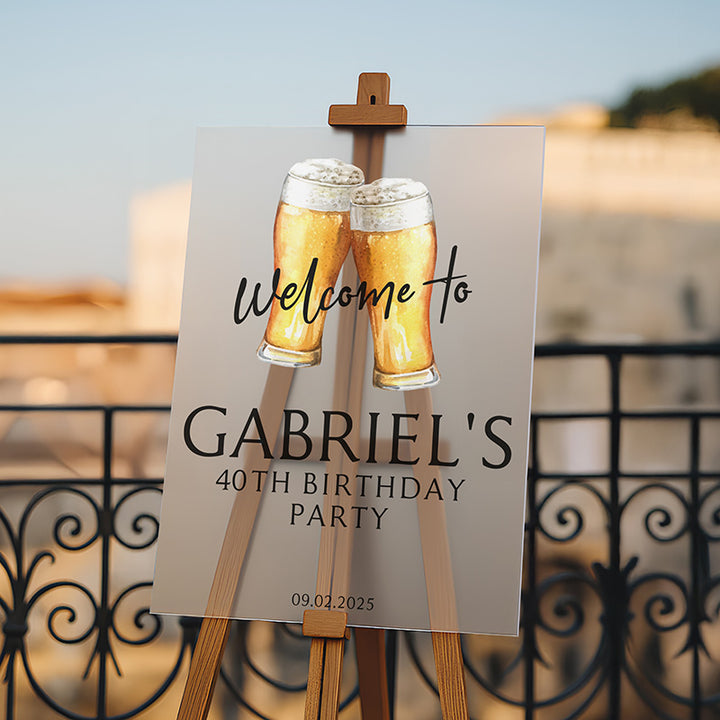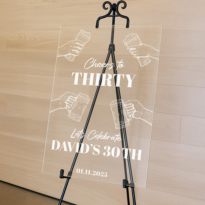While the sign is sold without an easel (available separately), it’s lightweight and designed for easy setup. Its acrylic construction ensures stability and a polished look, making it ideal for positioning at the party entrance or as a focal point in the main celebration area.