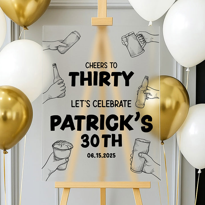 This Custom Party Sign manufactured from premium acrylic and printed with vivid UV technology. Durable and visually striking. S options ensure it fits perfectly into intimate living rooms or larger event spaces. While designed as a party centerpiece, the sign’s quality materials make it a keepsake the birthday man can treasure long after the celebration ends. Elevate the party’s décor with a sign that combines fun, elegance, and a personal touch, making every guest feel instantly welcome.