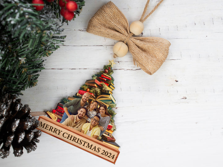 Custom Photo Book Tree Ornament – Personalized Christmas Gift for Book Lovers