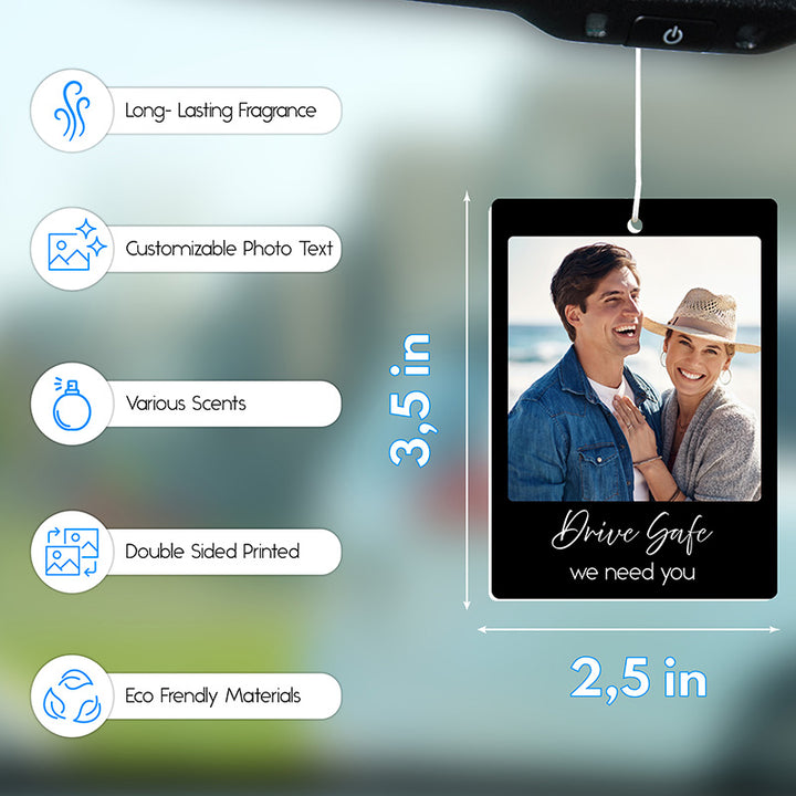 Every ride feels a bit safer when someone you love is next to you. Our Personalized Car Hanging Ornament was designed for those who always find a way to stay together, no matter what the distance is. Perfect for gift for someone who gets a new car, or someone who spends hours on the road, or to remind them to drive safely because you are waiting. This car adornment carries so many powerful emotions to make your ordinary rear-view mirror into a quiet, comforting keepsake. All you need to do is upload your favorite photo and add your own message: "drive safe", " waiting for you to come back home", " we love you", “we need you,” “get home safe,” or something entirely your own message to make this one super unique.