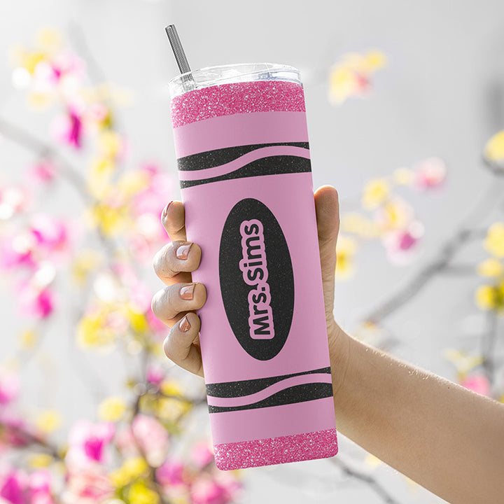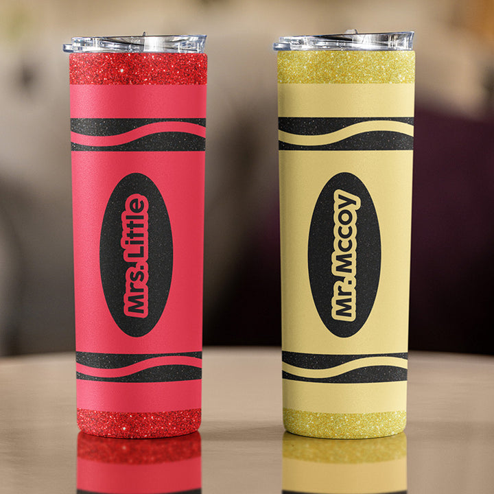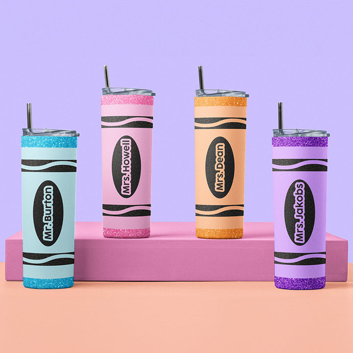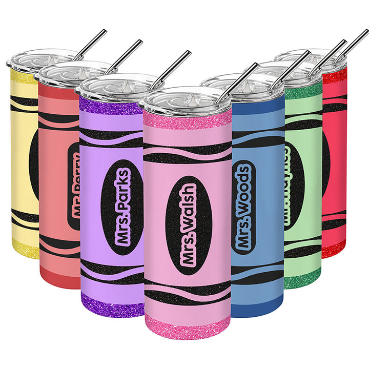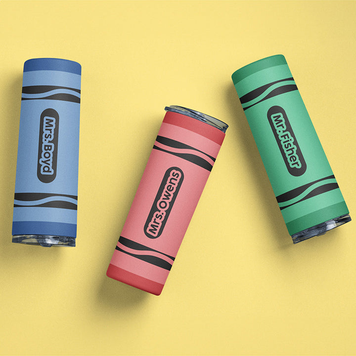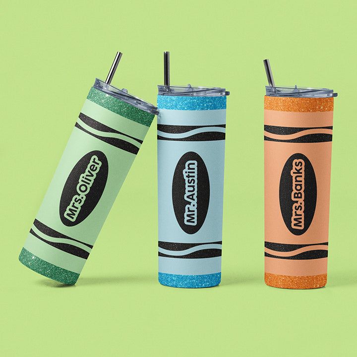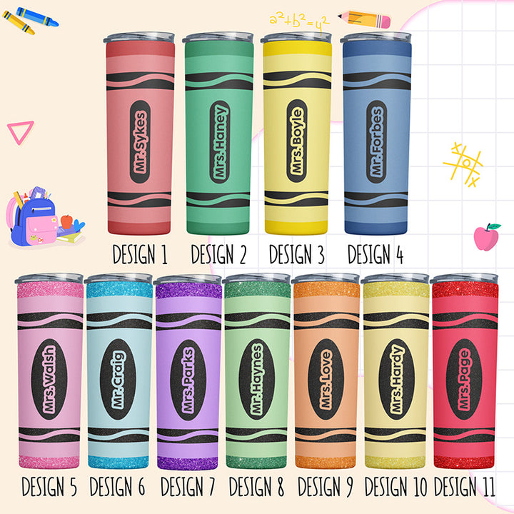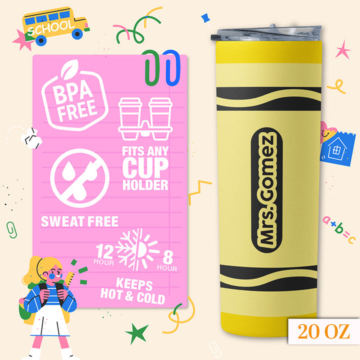 At this back-to-school season, we can never forget our beloved teachers, who put their all into teaching our kids every day. As a teacher appreciation gift or as a back-to-school gift for your children's lovely kindergarten or elementary school teacher, we designed a crayon pattern tumbler. It is a 2O oz capacity, stainless steel material, long and thin form, it keeps beverages hot and cold, and can be customized with a name and title. So it is everything a teacher needs. And since we always love to see our customers’ effort on the gifts they choose, you can customize this teacher tumbler with your kid and let this gift build a bond between your kid and her/his teacher.