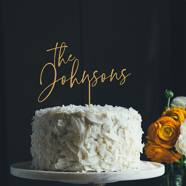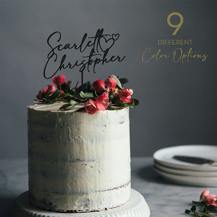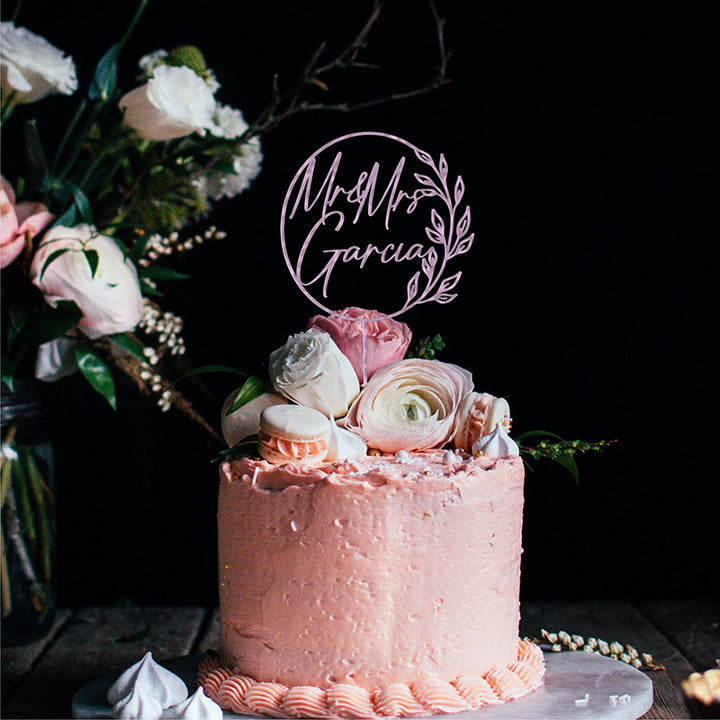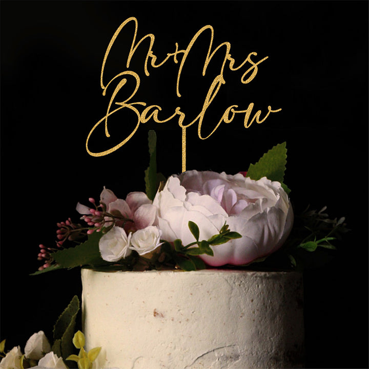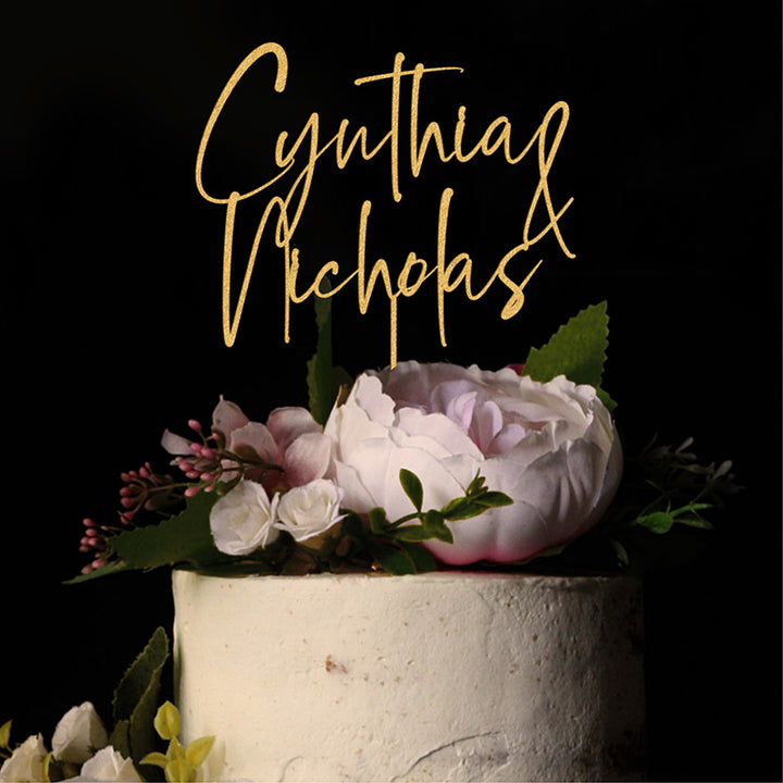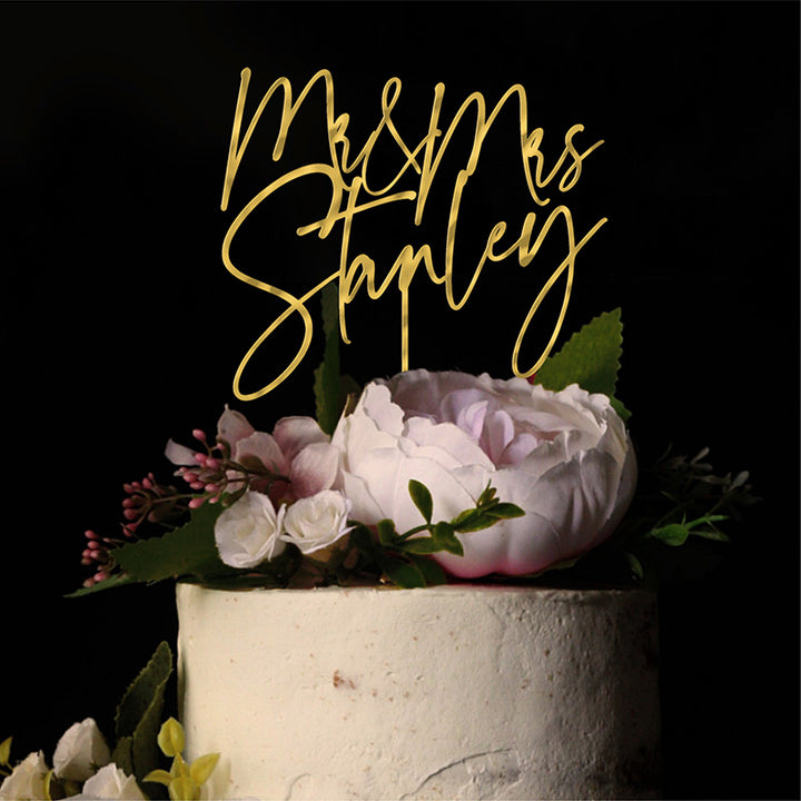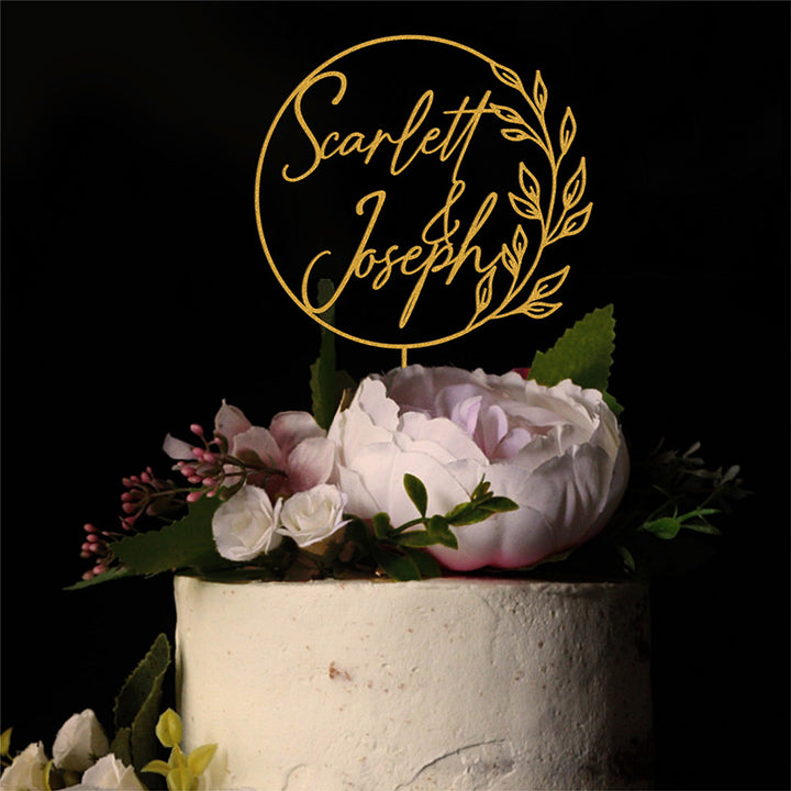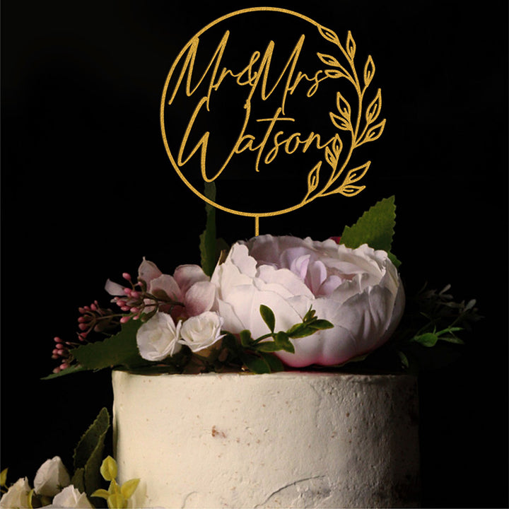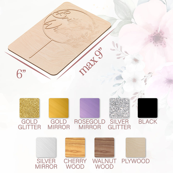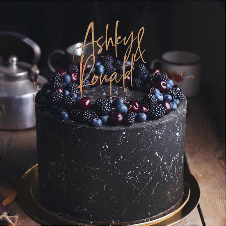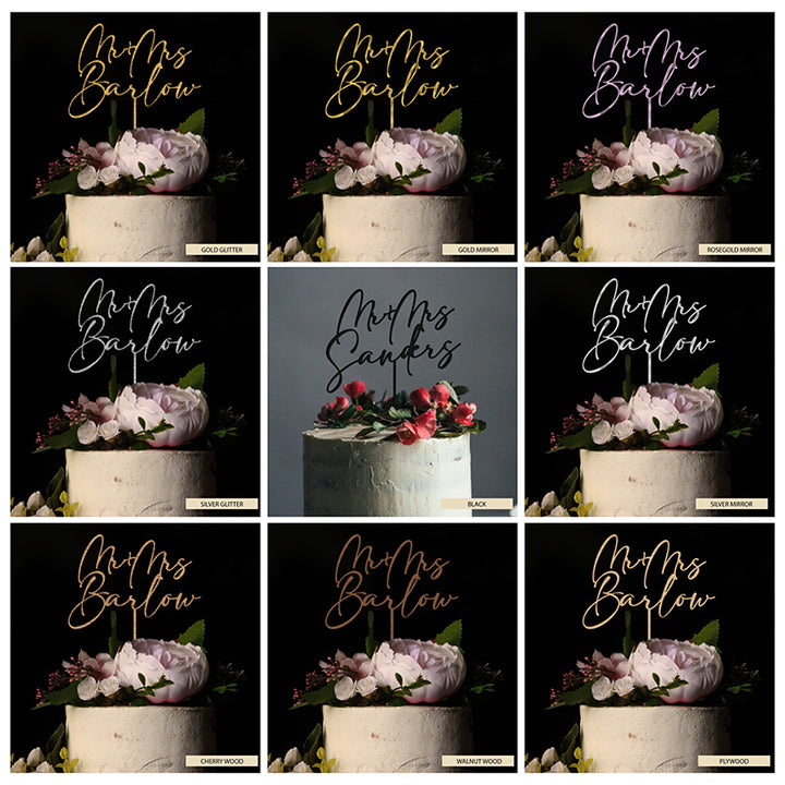 Each piece is laser-cut with precision, made from acrylic or wood, and offered in nine timeless finishes, from glossy black to soft walnut and rose-gold mirror. Whether your celebration unfolds under garden lights or inside a candlelit room, this topper becomes the quiet crown that completes your cake with its graceful, meaningful, and unforgettable design.