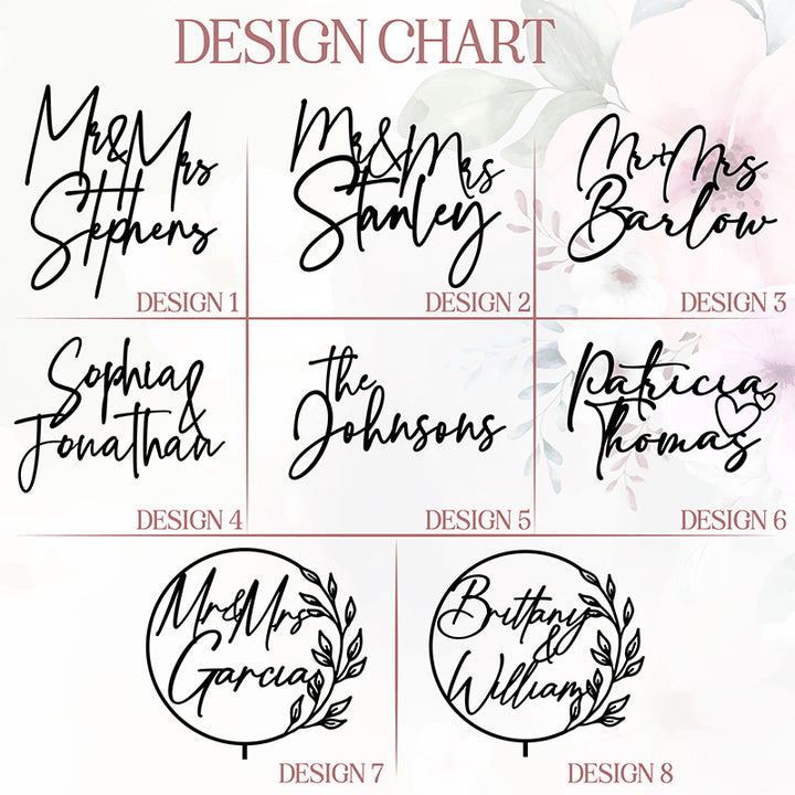 This wedding cake topper is crafted for couples who believe elegance doesn’t need to shout. Designed with refined, delicate typography and available in eight signature styles, it complements intimate weddings, the kind where every guest knows your story by heart.