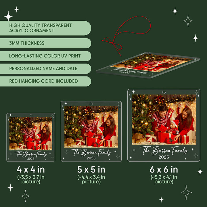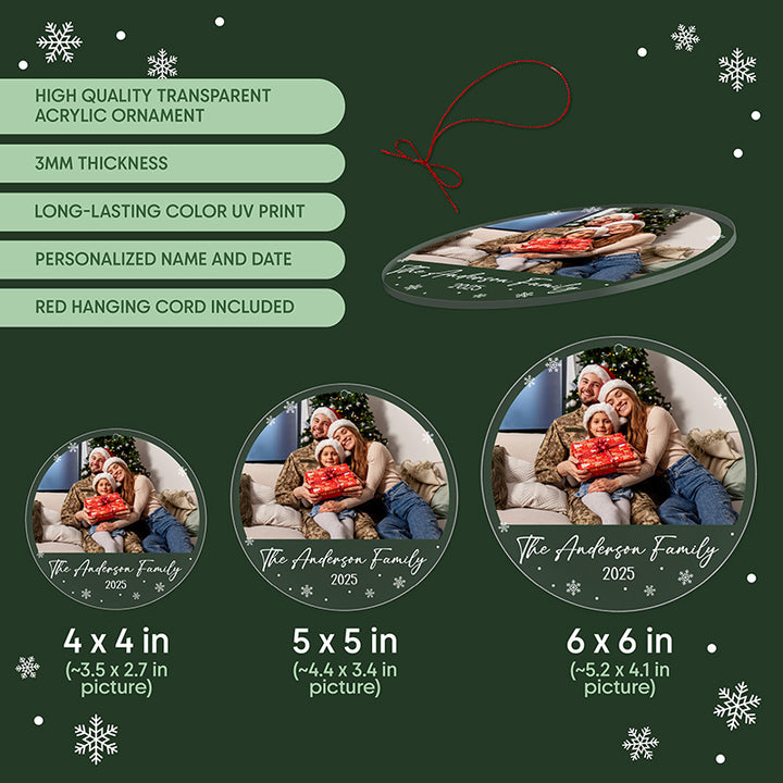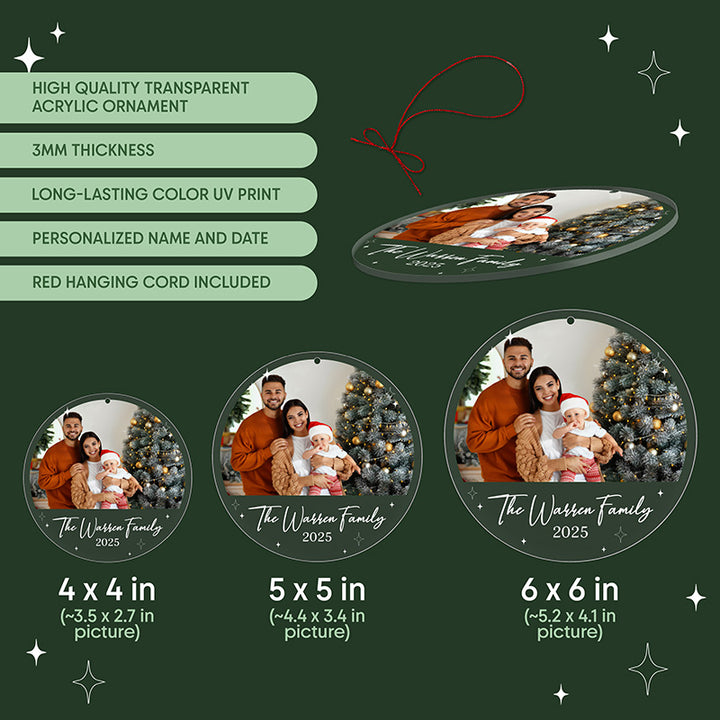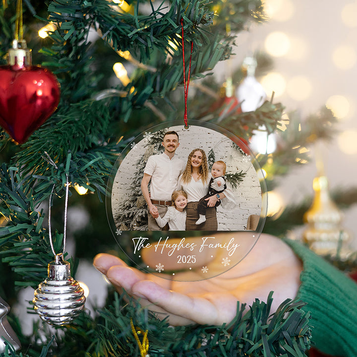 You can enjoy this Family Ornament far beyond the Christmas tree—its glossy acrylic finish and personalized photo make it a charming keepsake you can display all year long. Hang it on a gallery wall as a tiny framed memory, add it to your baby’s nursery for a warm personal touch, place it on your office desk as a little reminder of home, or pin it onto your memory board or seasonal décor corner to keep your favorite moments beautifully visible. This ornament is small, elegant, and versatile enough to fit anywhere your heart wants a touch of family warmth.