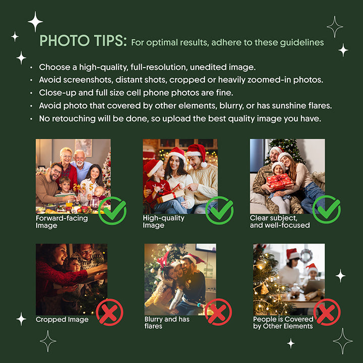 - Crisp details and high clarity—your photo will pop under Christmas lights