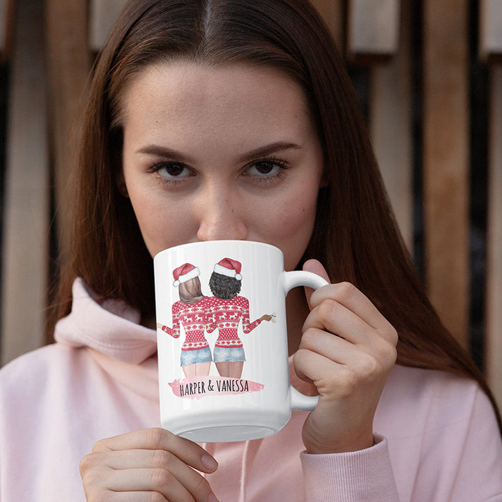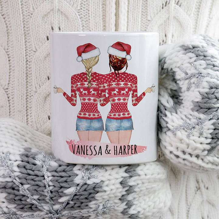 Christmas-themed girls’ best friend personalized illustration custom white mug.