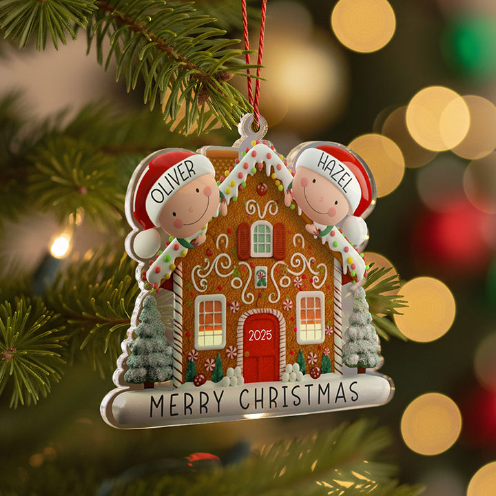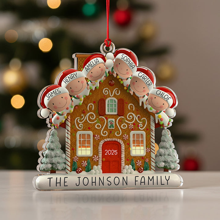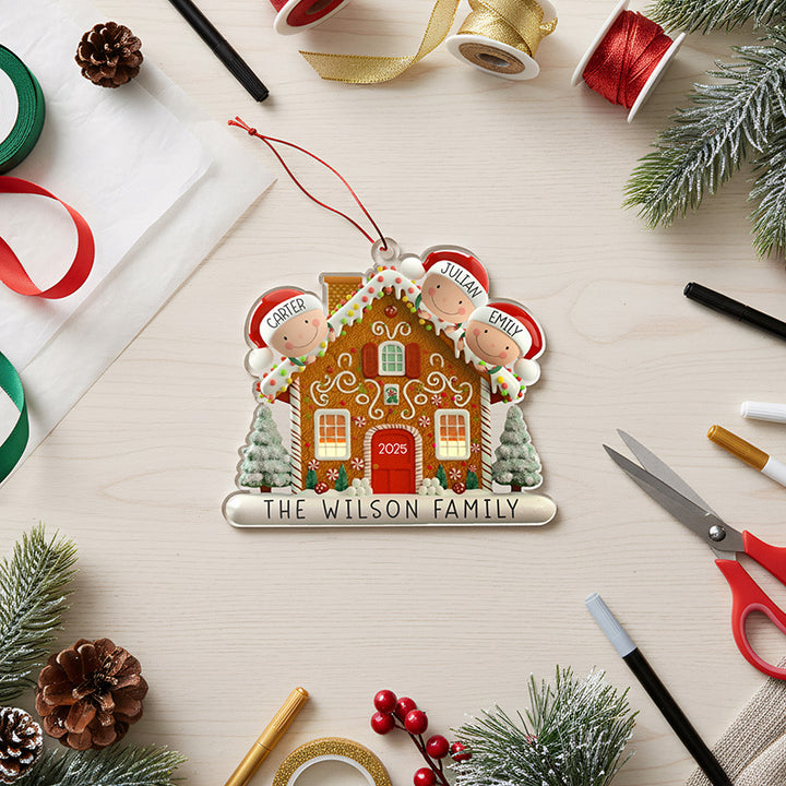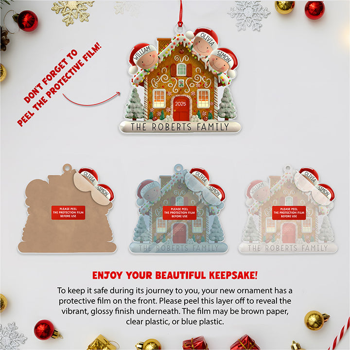 As you hang it on the tree year after year, this personalized keepsake becomes more than décor; it becomes a lovely memory. The glowing windows, the gingerbread details, the snowy roofline, and your family’s names carefully arranged above the house make it a heartwarming piece you’ll treasure forever. This ornament doesn’t just decorate your home; it captures the feeling of being home.
