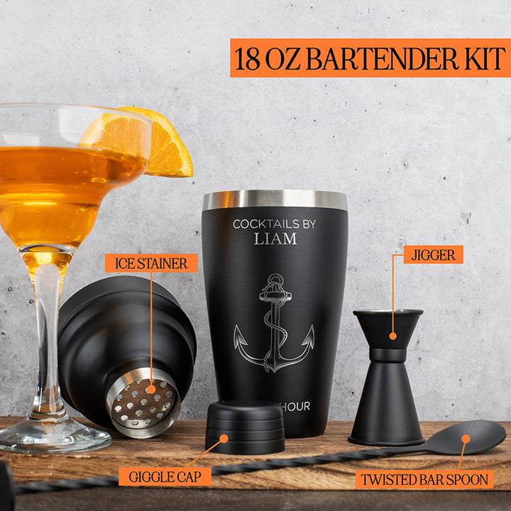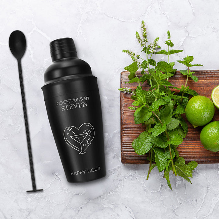 Matte Black 18oz Cocktail Shaker with Name & Custom Icon