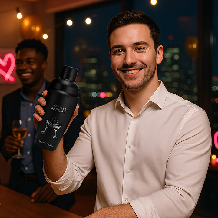 If you’re ready to be a professional mixologist in the comfort of your own house, you’re in the right shop to find yourself a next-level bartender kit with your unique signature. The signature of your chosen custom-engraved icon and your name. This 18-oz cocktail-making shaker set is not just a tool for delicious cocktails; it’s also a standout accessory for your home bar, and it’s going to be perfect in your hand while shaking in style when your name is engraved on it.