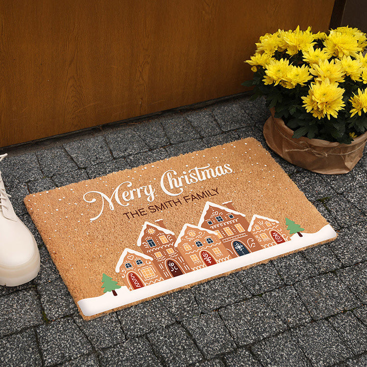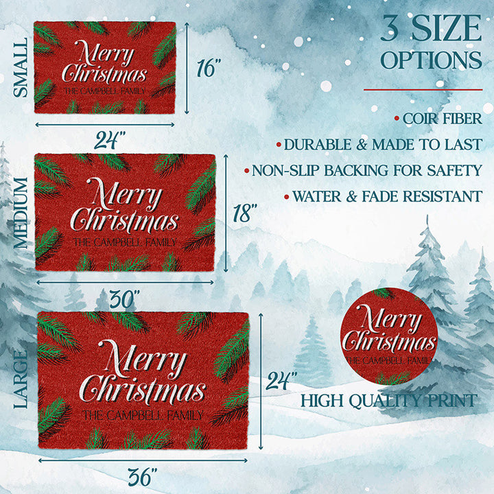 You can decorate your home's entrance to make your guests feel the holiday cheer from the very first step! Our Merry Christmas Doormat adds that magical touch to your entryway, inviting warmth, laughter, and festive sparkle to your home. Even Santa will use the front door instead of the chimney on Christmas Eve. Each mat is custom-printed with your family name, transforming a simple welcome into a heartfelt holiday greeting. Available in 6 charming designs and three practical sizes, it perfectly complements your seasonal décor whether it’s a cozy cottage, a snowy cabin, or a modern Christmas home.