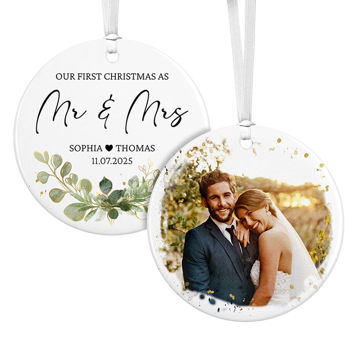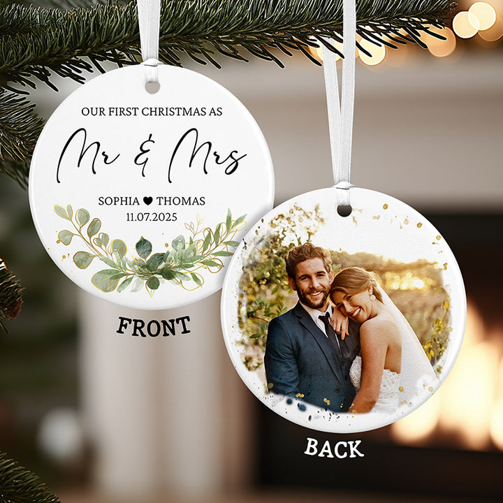 Our 1st Christmas As Mr & Mrs – Double-Sided Photo Ornaments