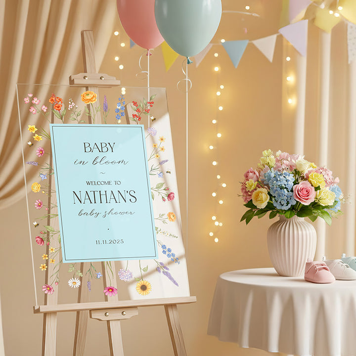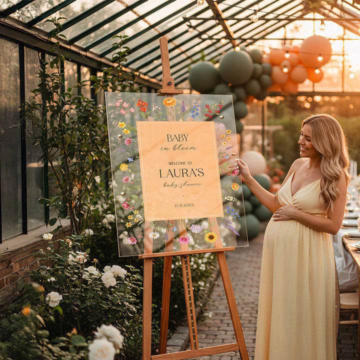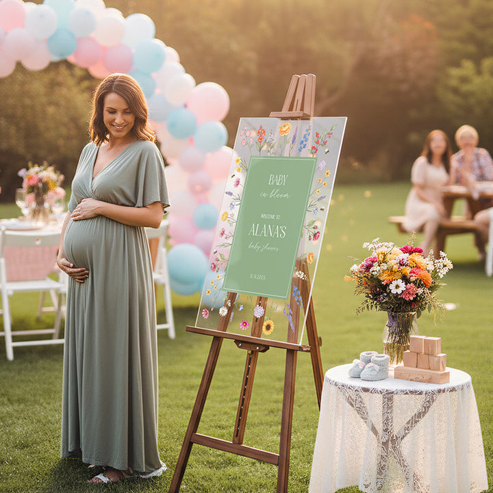 Greet your dear guests with sophistication using the customized acrylic marker labeled “Baby in Bloom” from Giftshire, which functions as the ultimate focal point to commemorate your anticipated arrival. As displayed attractively in our staged photographs, this marker effortlessly establishes a friendly, pleasant ambiance for every baby shower event, whether it takes place as a bright outdoor garden function or a comfortable indoor assembly. Produced carefully using premium UV printing methods, it transcends being a mere display and becomes a treasured memento.