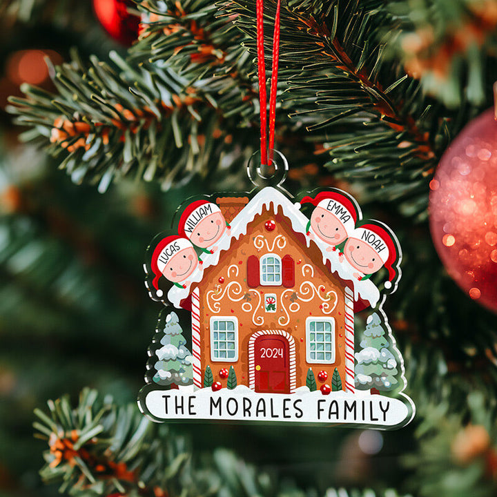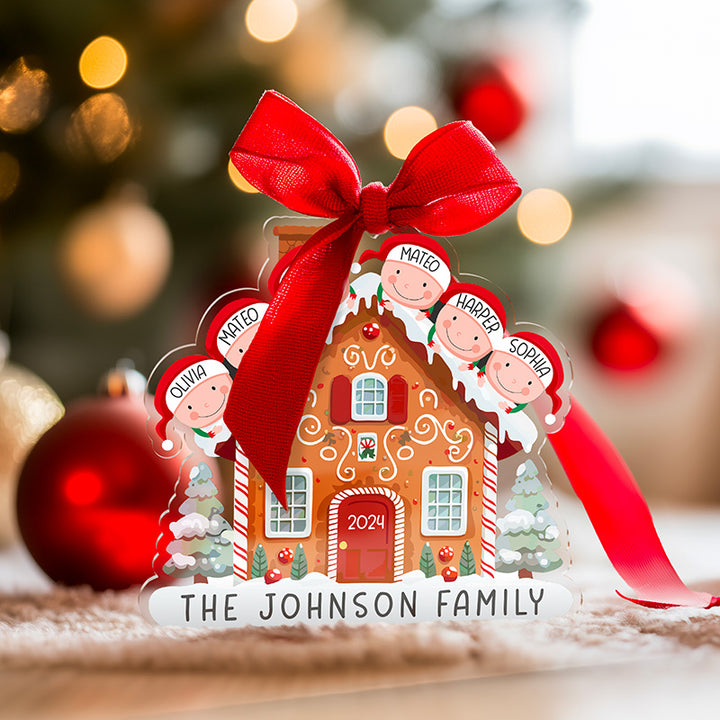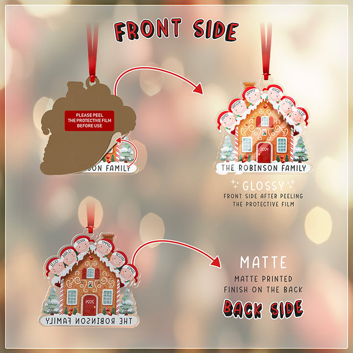 The physical shape itself is significantly more than a mere backdrop; it stands as the central element of the narrative. It vividly portrays a chronicle of a domestic unit securely settled within their residence during the Christmas festivities. This cutout silhouette represents a timeless emblem of dwelling, familial warmth, and the pleasant customs associated with the yuletide. This magnificent keepsake is manufactured from hard-wearing, accurately shaped acrylic, utilizing brilliant UV printing techniques. The final outcome features a polished, reflective surface coating on the front face that ensures the celebratory hues brilliantly stand out upon your evergreen display. The true enchantment resides within the detailed individual customization: you have the ability to feature up to six household members, each depicted by a smiling small countenance. Their respective appellations are identified upon a Santa-style cap, tucked securely along the snow-covered roof’s edge. The strategic placement of personalized faces along the snowy roofline reinforces the idea that these members transform a structure into a home.