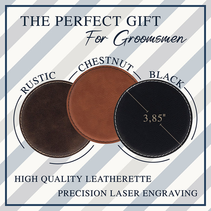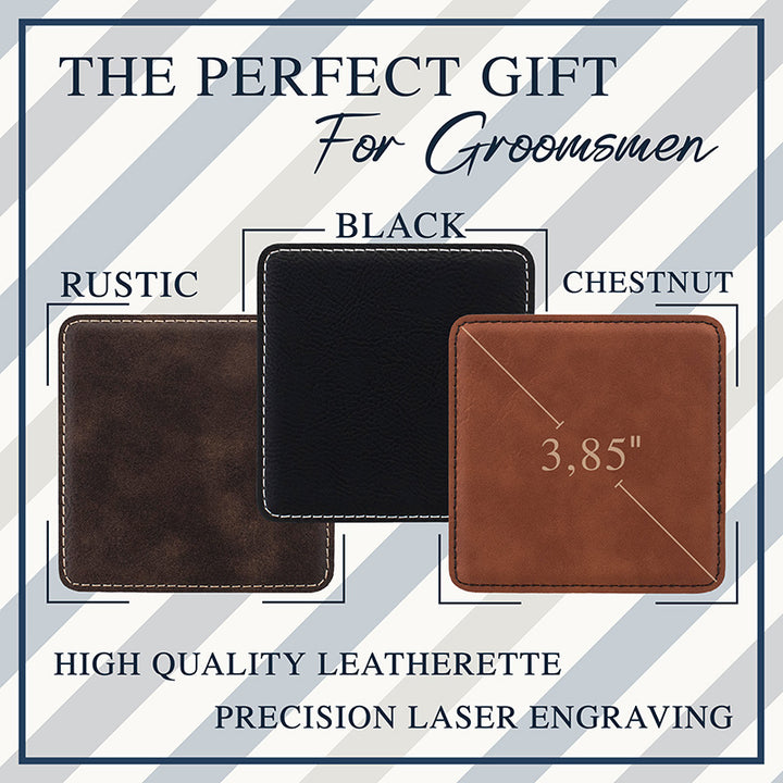Each coaster is crafted from premium and high-quality leatherette, offering a luxurious look & feel of genuine leather with enhanced durability and water resistance. On your wedding day, your best friends stand by your side. This is a gift for them to show you appreciation with a sophisticated, durable and unique bond.