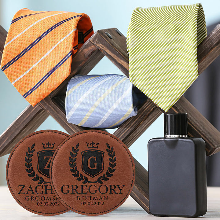 Sized at 3.85 inches, these square coasters are perfect for holding everything from a morning coffee mug to an evening cocktail glass. Match your wedding aesthetic perfectly; we’re offering three color options and 5 unique groomsmen engraved design options. Thank your groomsmen not only just for their support but also for their friendship.
