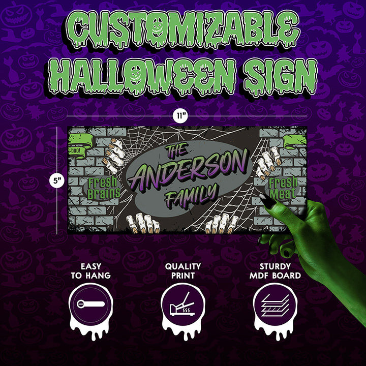Glance at the pictures to see the eight individual, terrifying layouts you can pick from, guaranteeing that the piece harmonizes completely with your specific decorating concept. Selections range widely, including an established autumnal style featuring gourds and skeletal remains, a truly spine-tingling graveyard setting, a menacing, blood-splattered alert reading “Enter If You Dare!”, or a lighter zombie graphic marked with “Fresh Brains”. Every sign measures 11 inches by 5 inches and is meticulously constructed from a resilient medium-density fiberboard (MDF) slab. The piece showcases a premium-quality printed image and is intended for effortless mounting. These distinctive markers are ideal for placement on your main entrance door, covered balcony, or foyer. They will immediately intensify your residence’s celebratory, frightening ambiance throughout the season. You can check all our Halloween Collection.