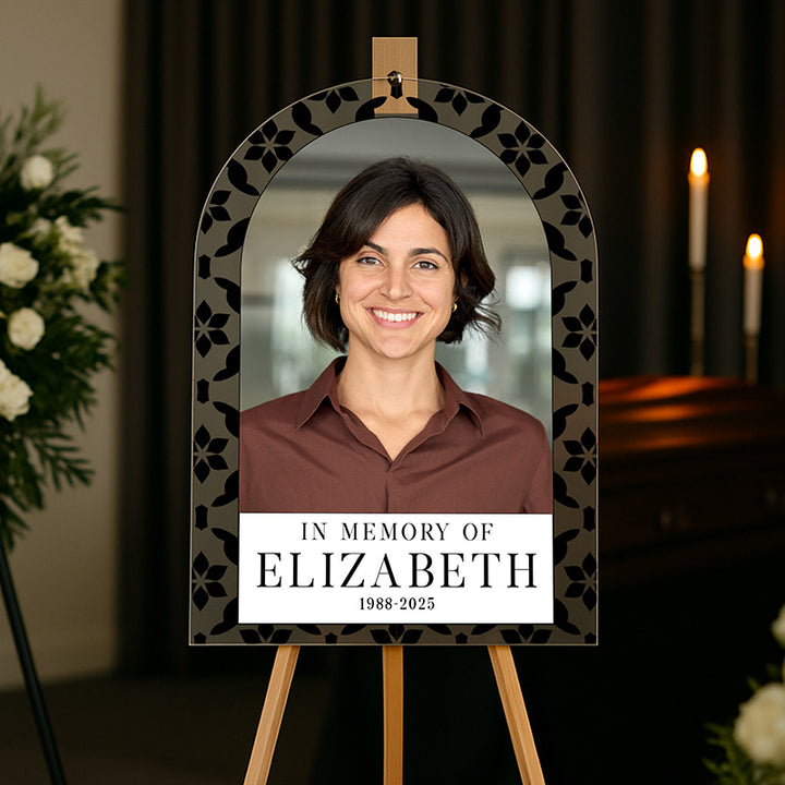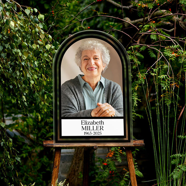 Create a gentle and meaningful tribute to a loved one with this customizable memorial welcome sign. Thoughtfully designed for funerals, memorial services, or intimate remembrance gatherings, it allows family and friends to honor cherished memories in a personal way. Perfect for families and close friends looking to commemorate a cherished life, this sign allows you to feature a meaningful photograph, full name, birth and passing dates, and a personal message such as “In Loving Memory Of.”