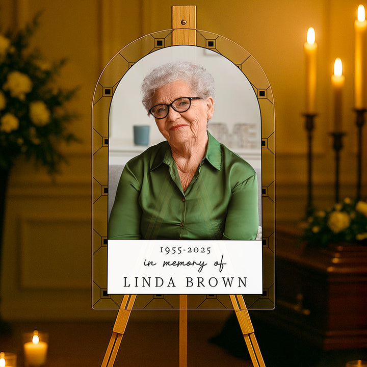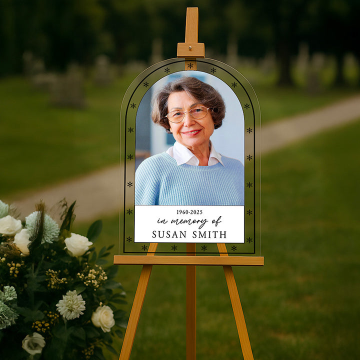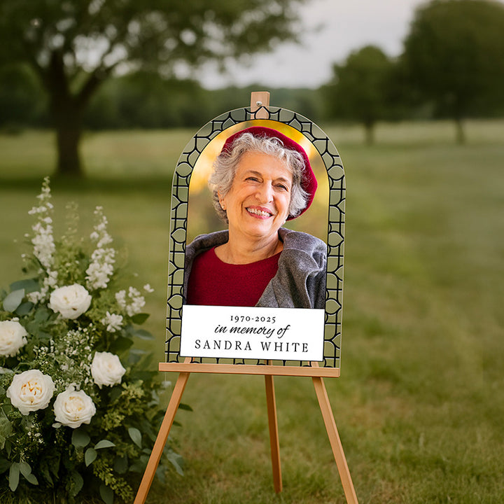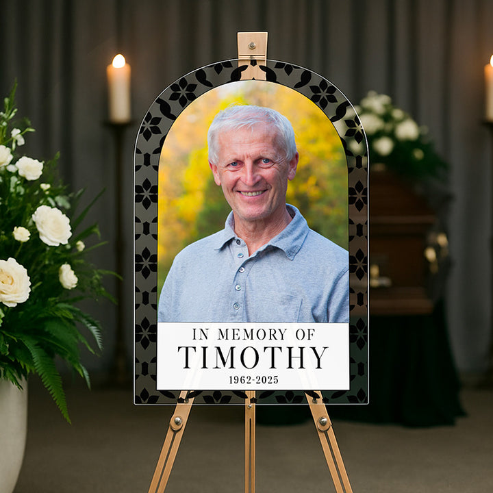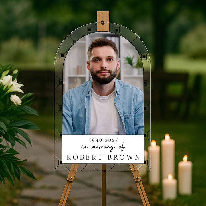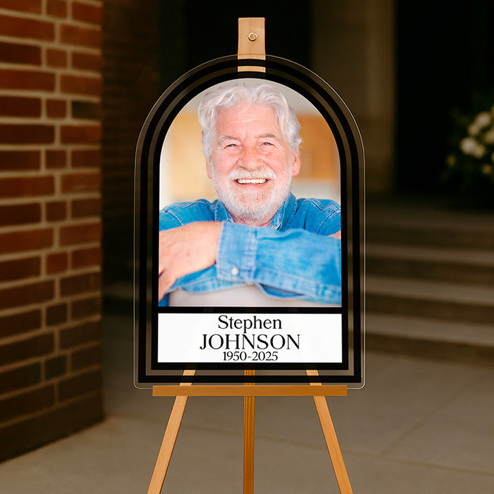 Crafted from high-quality acrylic, this memorial welcome sign is designed to last and serve as a lasting keepsake for years to come. Using advanced UV printing, every detail of your chosen photo and text is rendered in sharp, vibrant clarity, ensuring that your tribute is as beautiful as it is enduring. Available in three sizes, it can suit both intimate gatherings and larger memorial spaces.