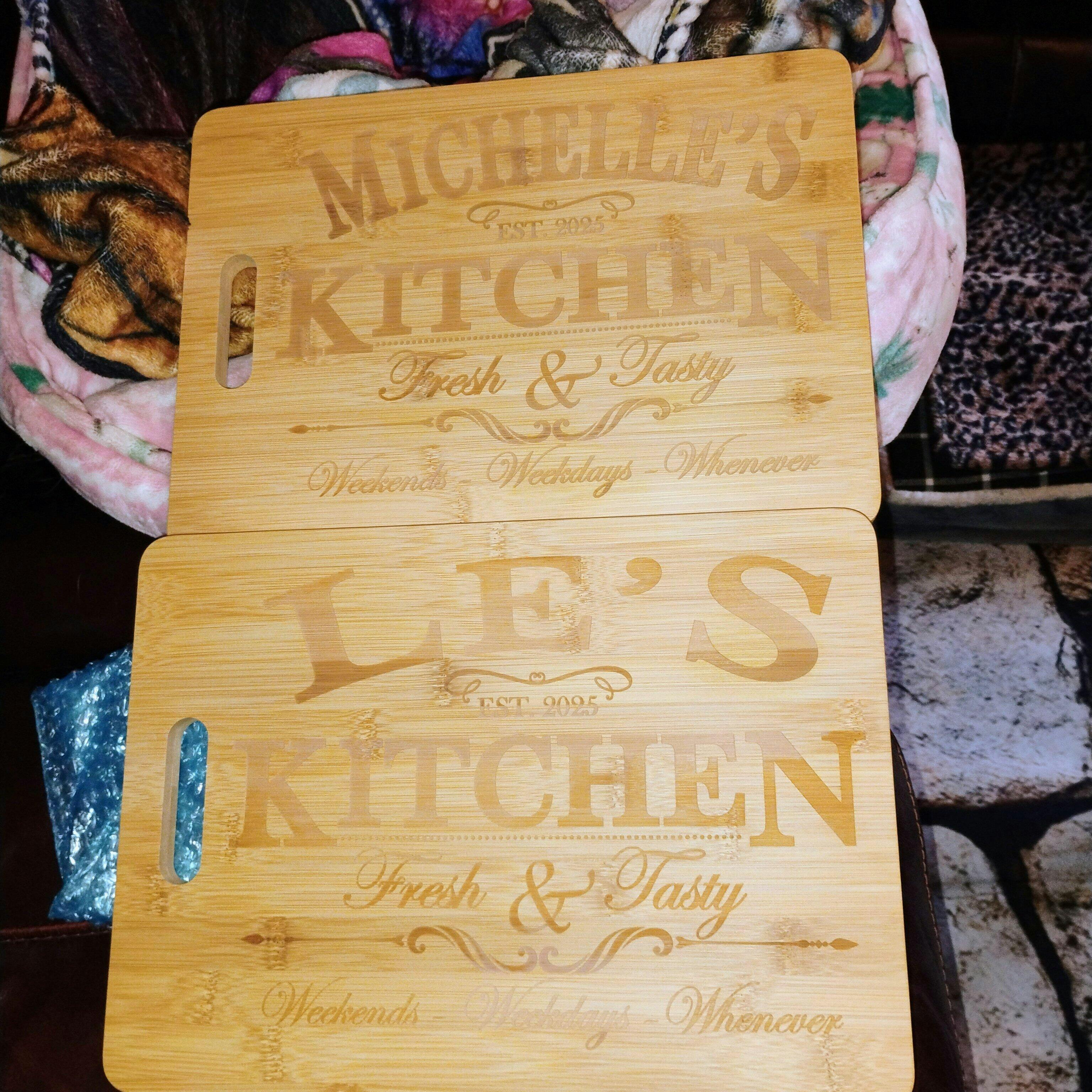 Our personalized cutting boards are crafted from the finest bamboo wood, ensuring top-notch durability. They're meticulously laser-engraved to create a long-lasting, one-of-a-kind keepsake.