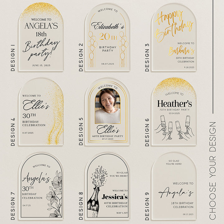 Made from premium acrylic and printed with vibrant UV technology, this birthday welcome sign is built to impress and endure. Available in three sizes, it can suit both cozy parties and large-scale celebrations. One design option even allows you to upload a photo, adding a truly personal touch. The sign isn’t just decorative—it’s a keepsake your guest of honor can treasure long after the party ends. With multiple designs, backgrounds, and size options, you can create a striking centerpiece that’s as unique as the birthday girl herself