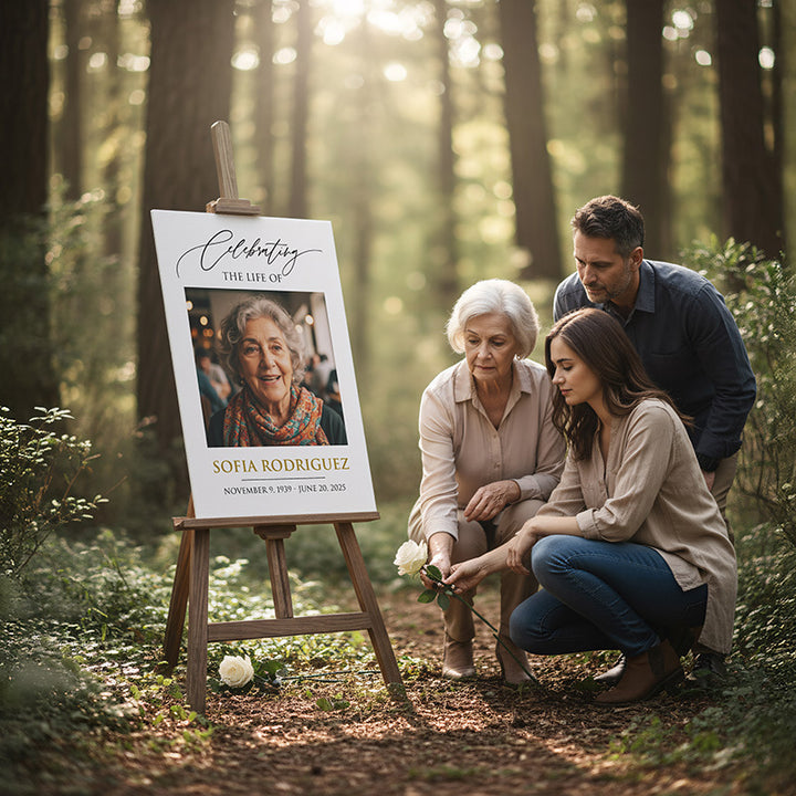Numerous relatives elect to preserve the signage as a permanent memento. This item is perfect for permanent exhibition inside the residence, perhaps mounted on a wall—a particularly easy feat if you selected the lighter foam board option. Furthermore, it often makes an appearance during yearly milestones and important family events as a way to respectfully pay tribute and recall the person they held dear. In essence, it transforms into a stunning work of art dedicated to remembrance, sustaining the celebration of their existence.