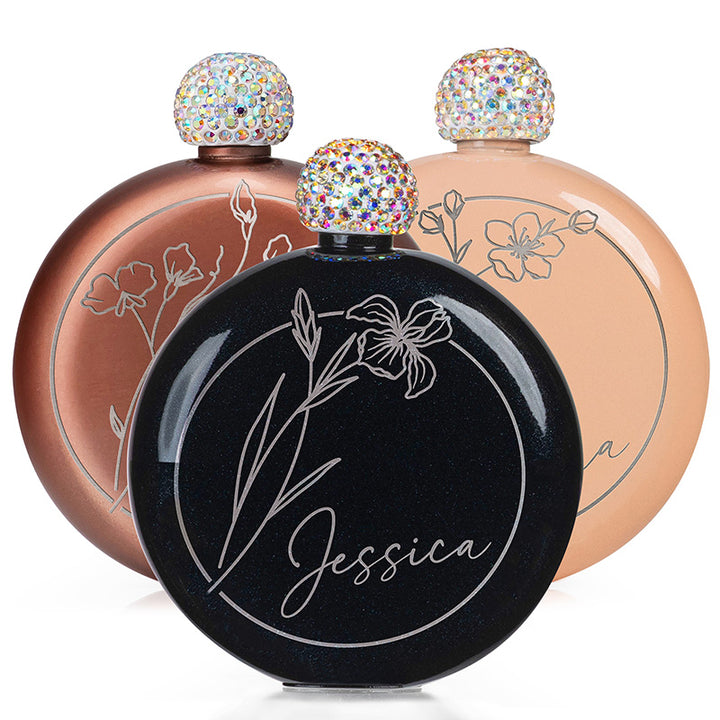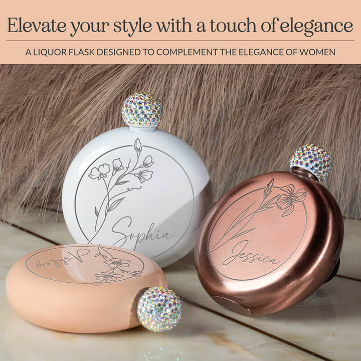 Personalized Rhinestone Liquor Flask for Fashionista Women