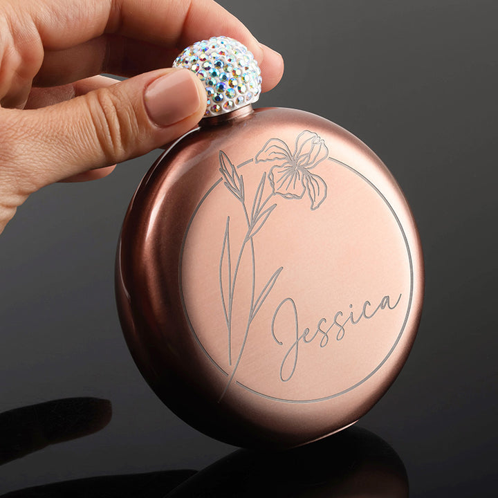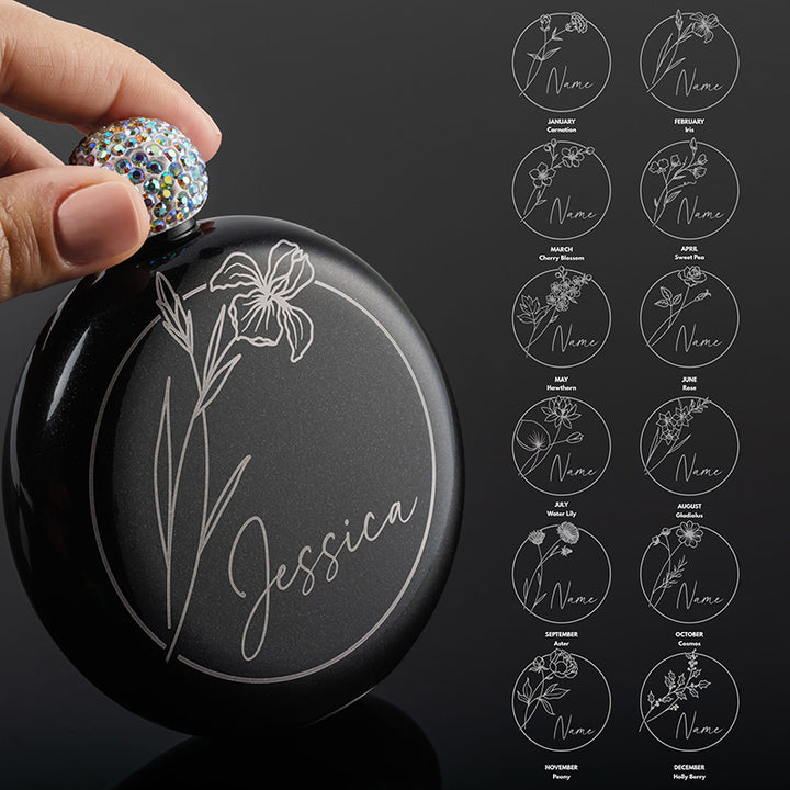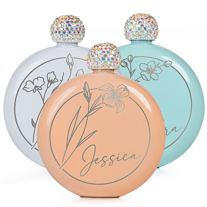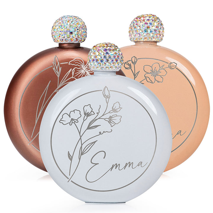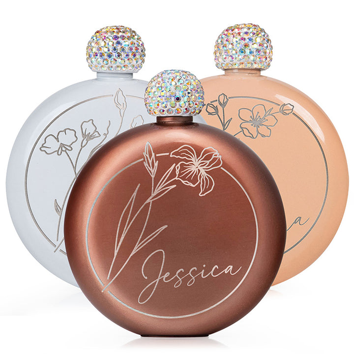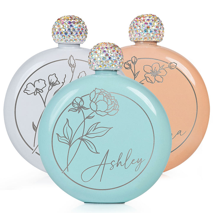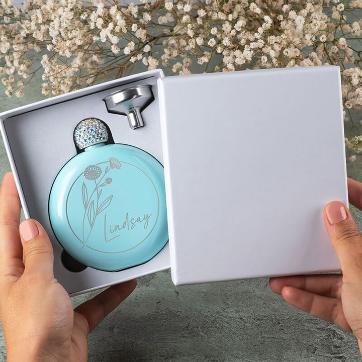Each flask is custom-engraved with meticulously detailed birth month flowers and the lady’s name. Select the related bloom of her birth month, or a favorite flower illustration of your loved one, to buy a surprise personalized gift for her. The floral designs are paired with a name of your choice, and precisely engraved with laser engraving technology to get a smooth and deep personalization. Each flask features a rounded silhouette that fits easily in her hand, slips into any clutch or handbag. The sparkling cap, which catches the light, provides a touch of glamour. The flask options are available in a stunning color palette that will match with any outfit selection.