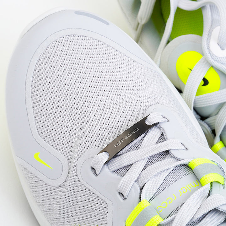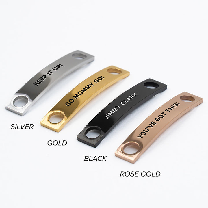 Introduction: These elegant metal additions are crafted to slip directly onto your laces, thereby transforming your favored athletic shoes into a powerful personal declaration. Total personalization is the core attraction of a reinforcing slogan (like “KEEP IT UP!” or “GO MOMMY GO!“). You may select from four magnificent metallic hues to flawlessly complement your footwear options: classic Sterling, refined Yellow Metal, sleek Dark Finish, or stylish Pink Gold.