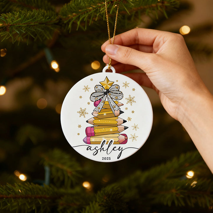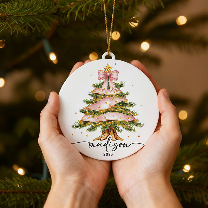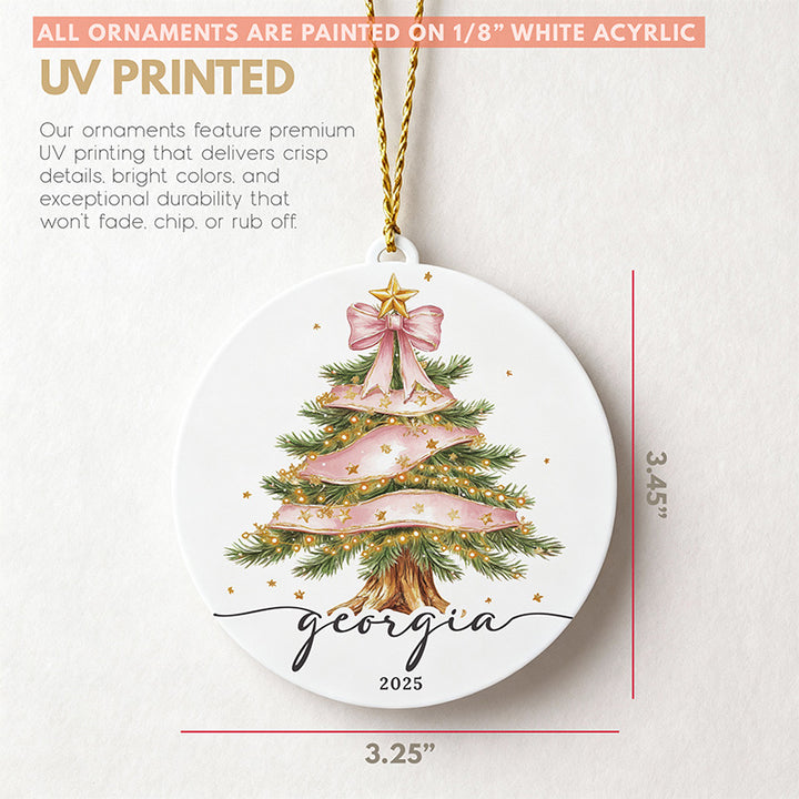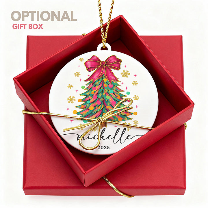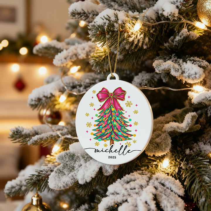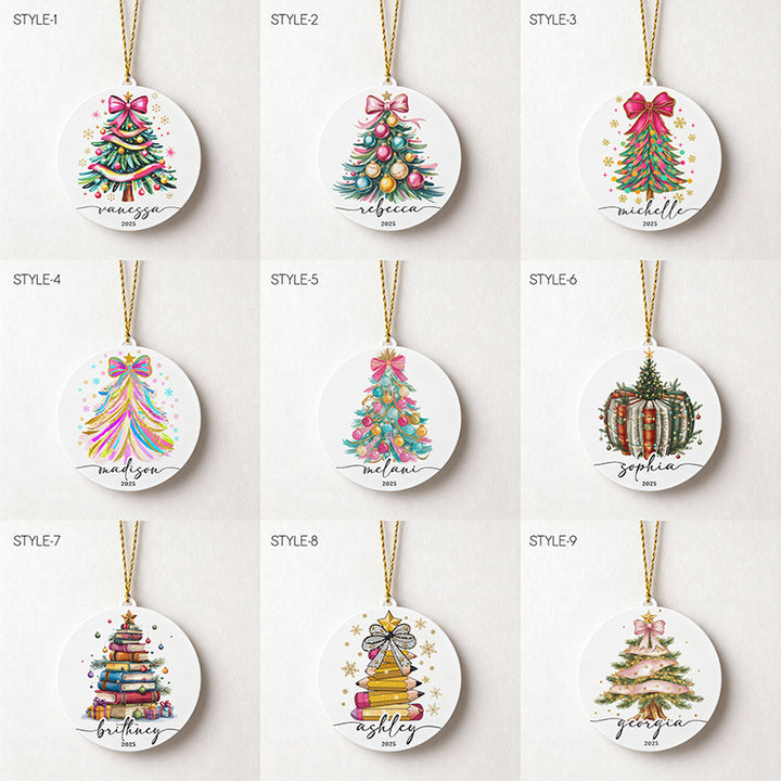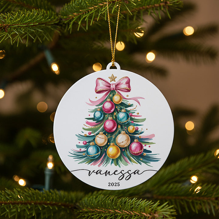 One of our ornaments that reflects the whole Christmas spirit on its own is our Personalized Christmas Tree ornaments, which stand out with their romantic design. These Christmas Tree Hangers stand for all the sparkles with personality; elegant, colorful, and joyfully unique! You can find the perfect Christmas Tree representation for everyone in your family in one of the 9 designs; filled with lights, a tree from books, pink ribbon romance, or more. Each piece in this Christmas Tree Ornament Collection captures a different mood of the season, from whimsical pastel tones to classic festive greens. With its glossy 1/8” white acrylic base and UV-printed artwork, the colors stay as bright and crisp as the first day you hang it, no fading, no chipping, just pure Christmas charm that lasts for years.