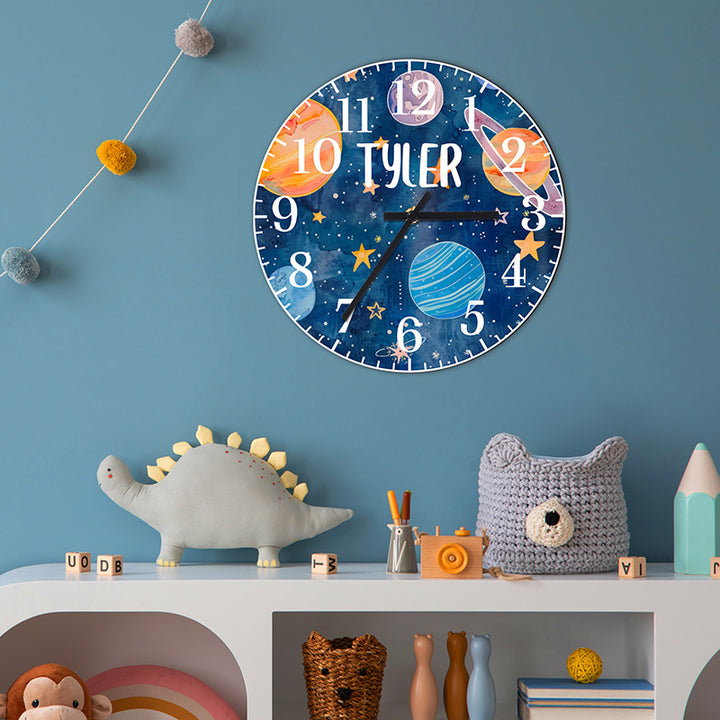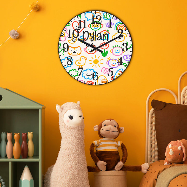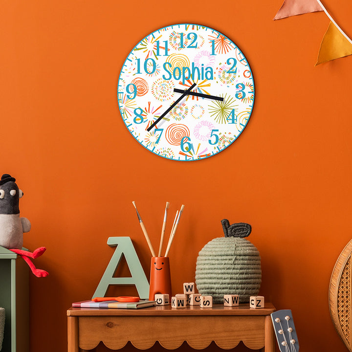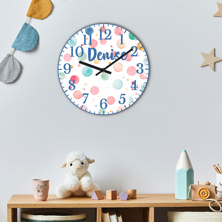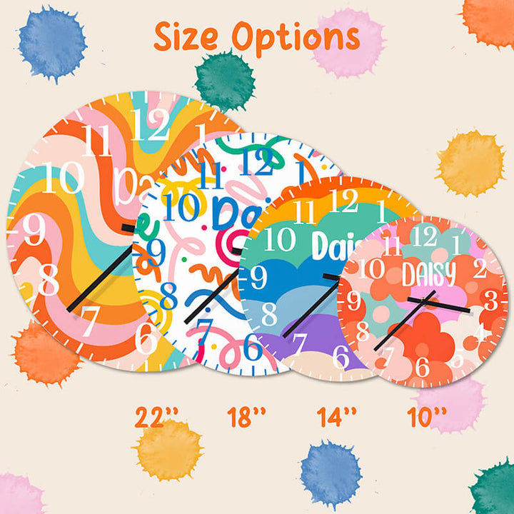 Think about the energy, the love, the sheer effort that goes into creating a unique gift for your kid’s room. Our personalized children's wall clocks. This is so much more than a way to tell the time. It's a statement wall art, beautifully rendered in a design that captures their unique personality. Giftshire’s offering a whole universe of styles. For your little dreamer, we have a personalized clock set against dreamy watercolor polka dots. From the whimsical doodles to the vibrant sunbursts, there are lots of designs here that feels like it was made just for them—because, with their name on it, it literally is. It’s the ultimate finishing touch, a functional piece of art that makes their space truly and completely their own.
