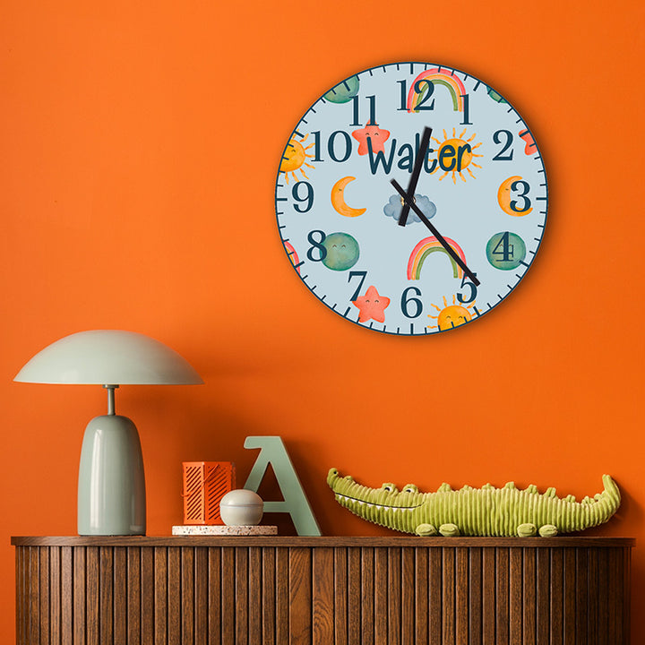 It sweeps smoothly without making sounds. Personalized Wall Clock for Kids is a friendly clock for naps and night time.