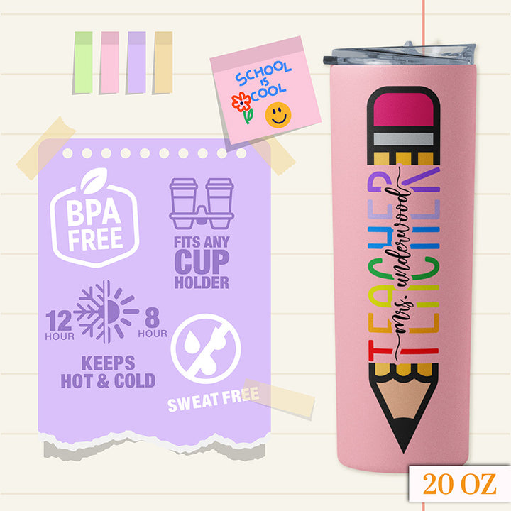 Teacher Tumblers with Name – 20 Oz Skinny Tumbler