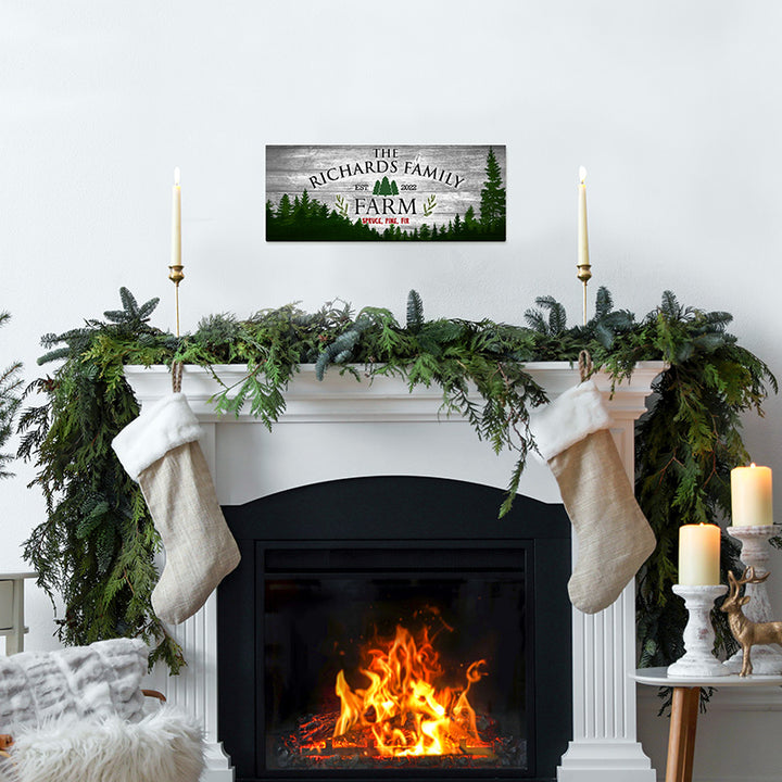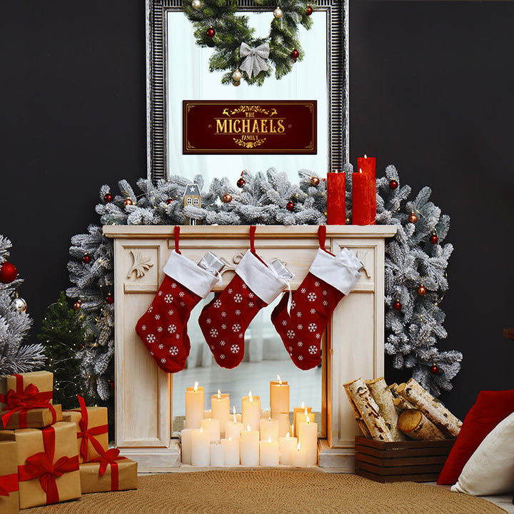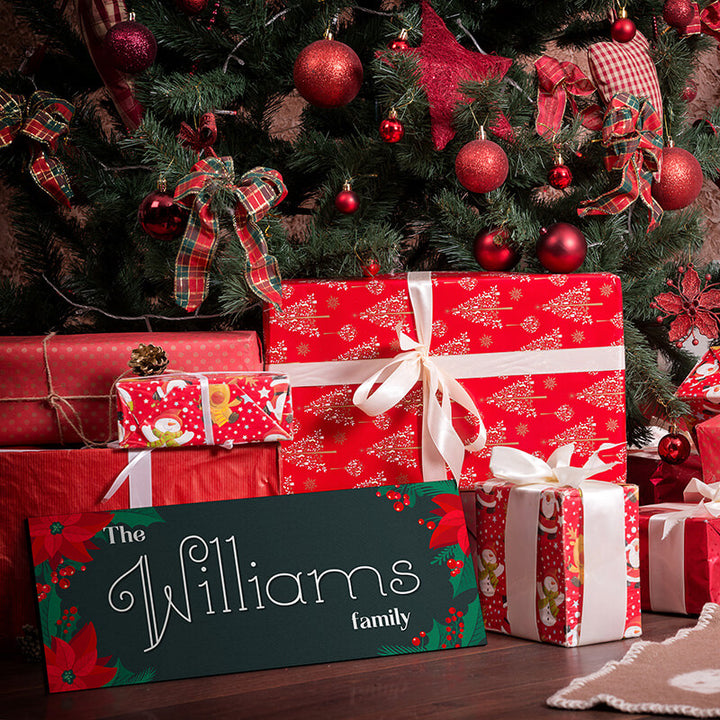 Festive christmas holiday decor with family name.