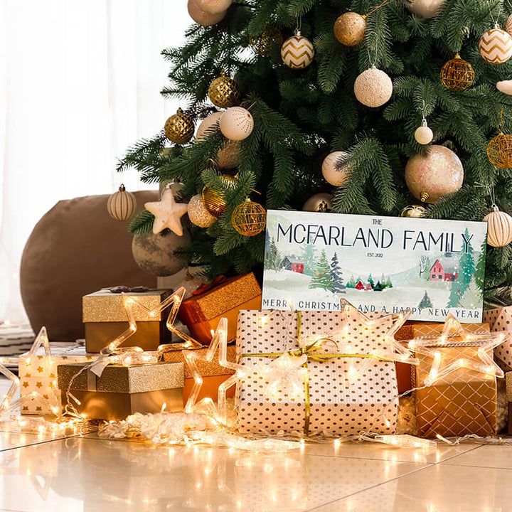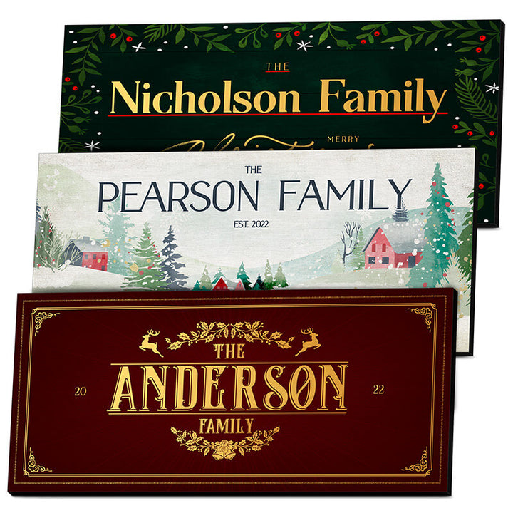 Introduction: Improve your seasonal decorations with an expertly manufactured, tailor-made festive wall marker intended to bring a cozy, distinctive flair to your residenceI. This offering delivers a genuinely singular chance for you to fashion an exceptional item that honors your household throughout the holiday period. The process starts when you select from eight separate visual layouts, each possessing its own singular appeal. These choices span a wide spectrum, ranging from quaint, rural winter imagery and snow-covered vistas to refined flower patterns and well-known seasonal sentiments. After settling on your preferred look, you have the option to customize it further with your surname and, for certain selections, the date your family was founded, thereby making an absolutely incomparable memento. These top-tier printed plaques come in two useful dimensions (18 inches by 7 inches and 11 inches by 5 inches) and arrive fitted with pilot holes. This guarantees effortless setup, allowing you to immediately greet visitors and illuminate any interior space.